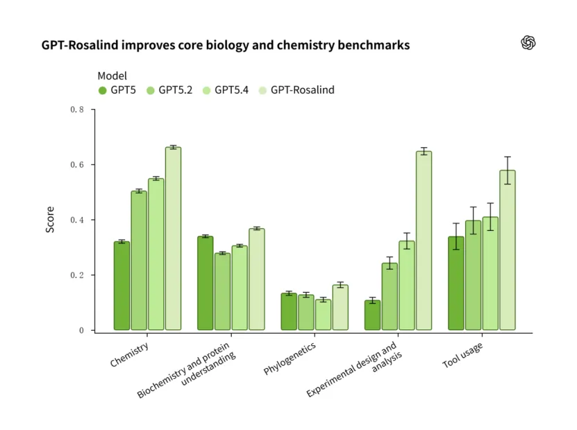 结果表明,GPT-Rosalind 在科学研究的整个流程中都展现出了进步。这意味着它能够更有效地帮助研究人员完成科学发现任务。