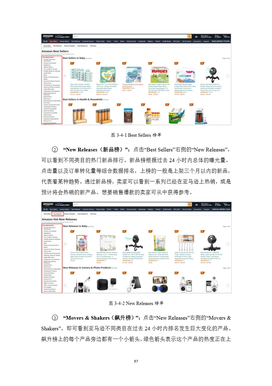 • 六大实用选品方法论:涵盖亚马逊榜单选品(Best Sellers、New Releases、Movers & Shakers)、季节性/节日选品、热点事件借势、精品店铺复制、多平台交叉验证、供应链源头选品,覆盖泛类目爆款挖掘与垂直品牌打造双路径。