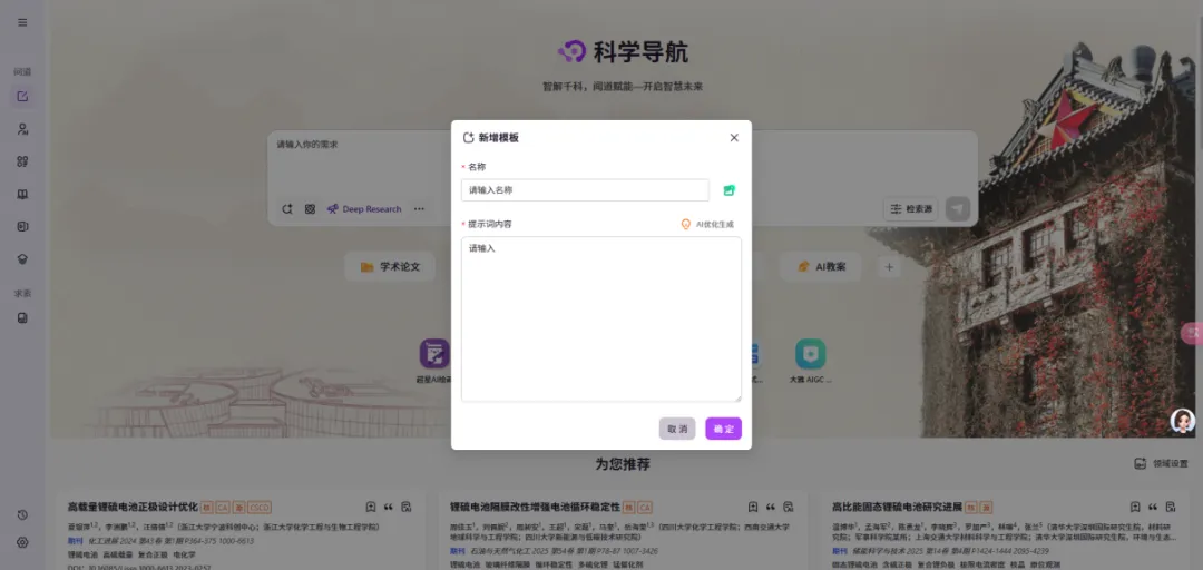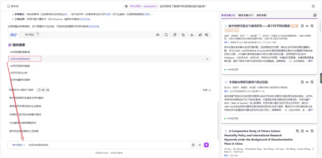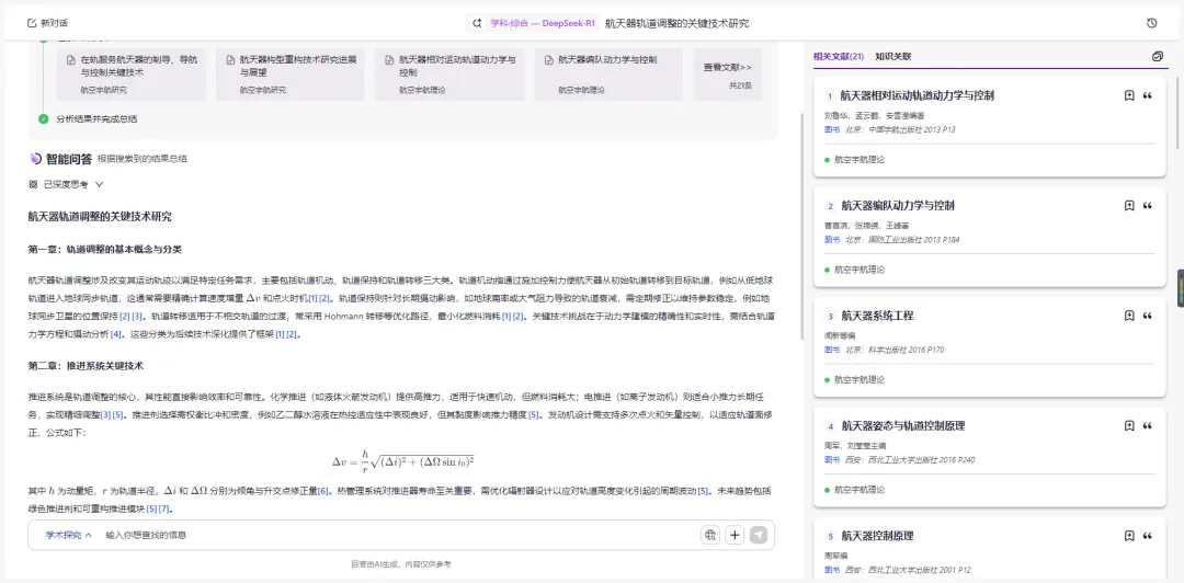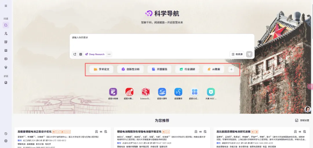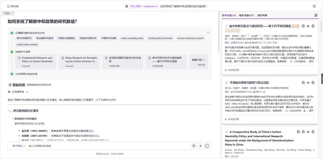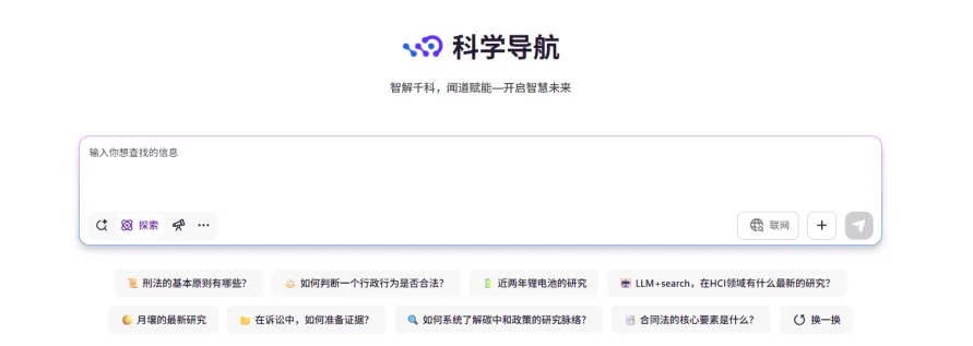 (1)学科·探索问答:不限学科进行AI问答,查询学术引擎、OA资源、顶刊会议等,进行学术研究问答。