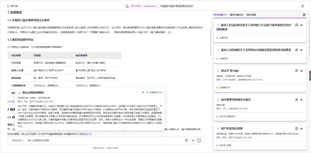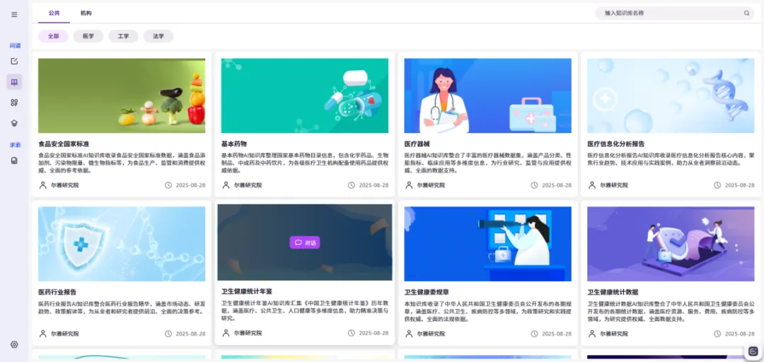 (2)学科/领域专业知识库问答:支持用户按学科/专业/领域选择垂域智能体,确保在不同学科(如法学、医学等)/专业/领域的检索中,能够针对性地基于专业学科性的AI知识库进行精准问答与知识检索,回答来源于知识库中的原文。