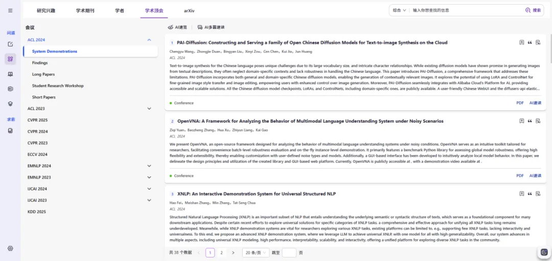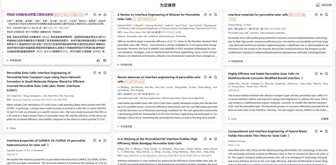 (2)根据研究兴趣,推送相关学术资源,可对资源进行“加入阅读清单”“引用”“AI解读”。如资源存在原文情况下,点击【AI速读】,打开AI速读页面。