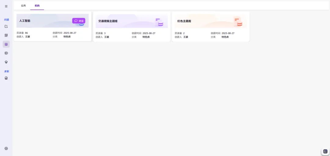 在单位已开通机构AI知识库的情况下,展示机构下的特色资源库。