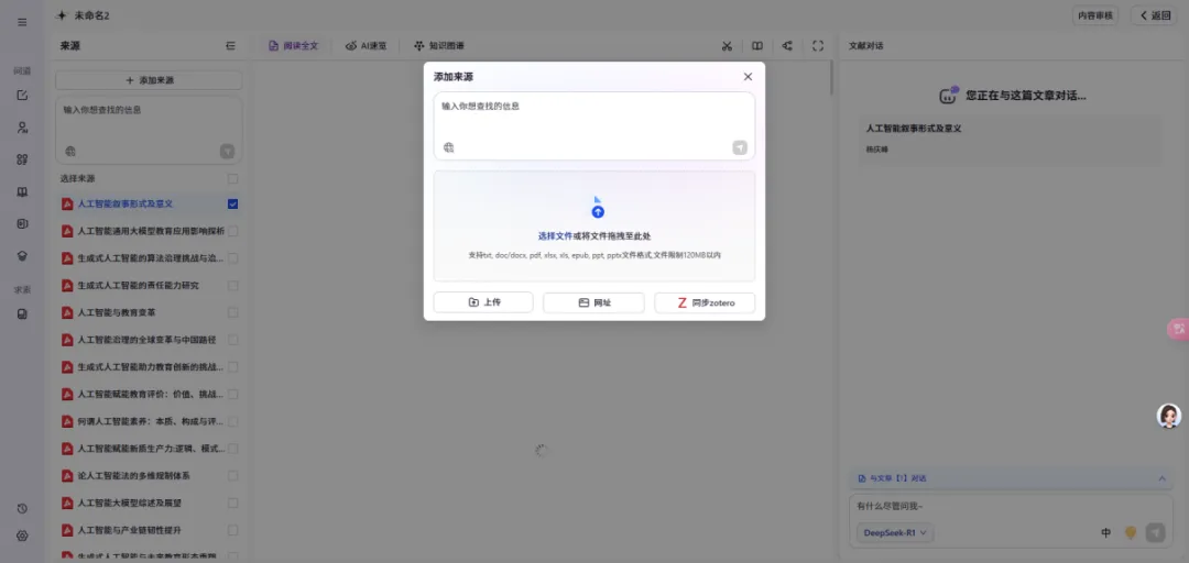 (2)支持将多种类型资源加入知识星链:AI检索、本地文件、网页解析、zetero文件导入。