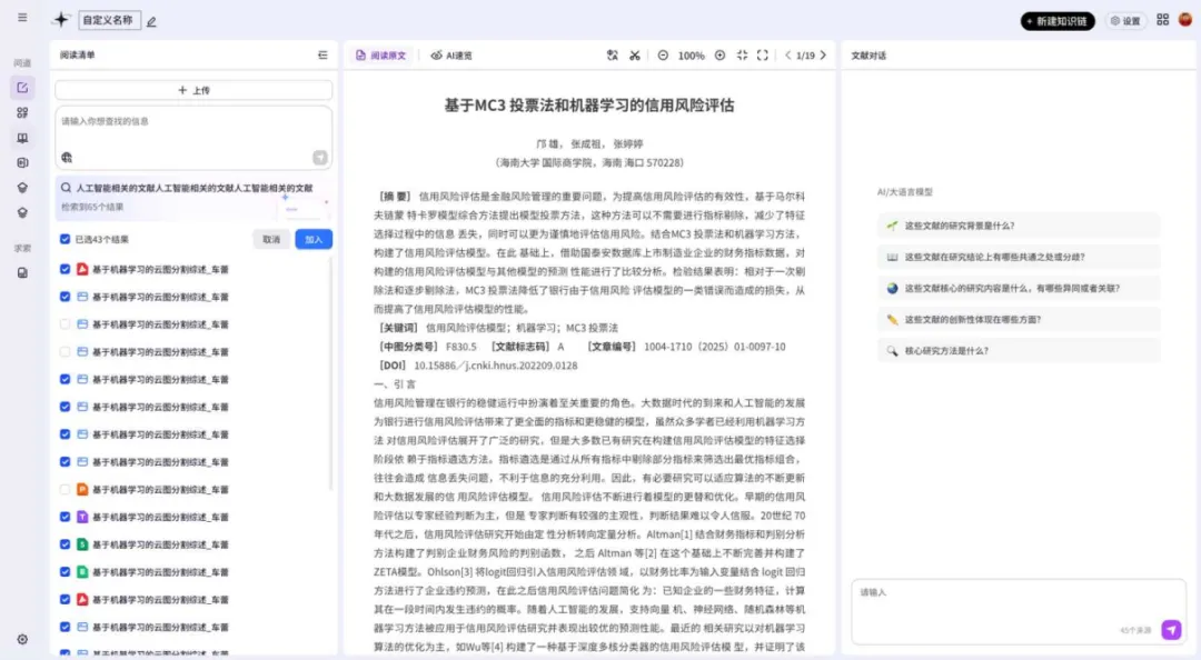 (3)支持单篇、多篇、知识链对话无缝切换。可同时加载多篇相关文献,实现内容、观点、数据的跨文献横向对比,帮助用户快速挖掘文献间的关联与差异。