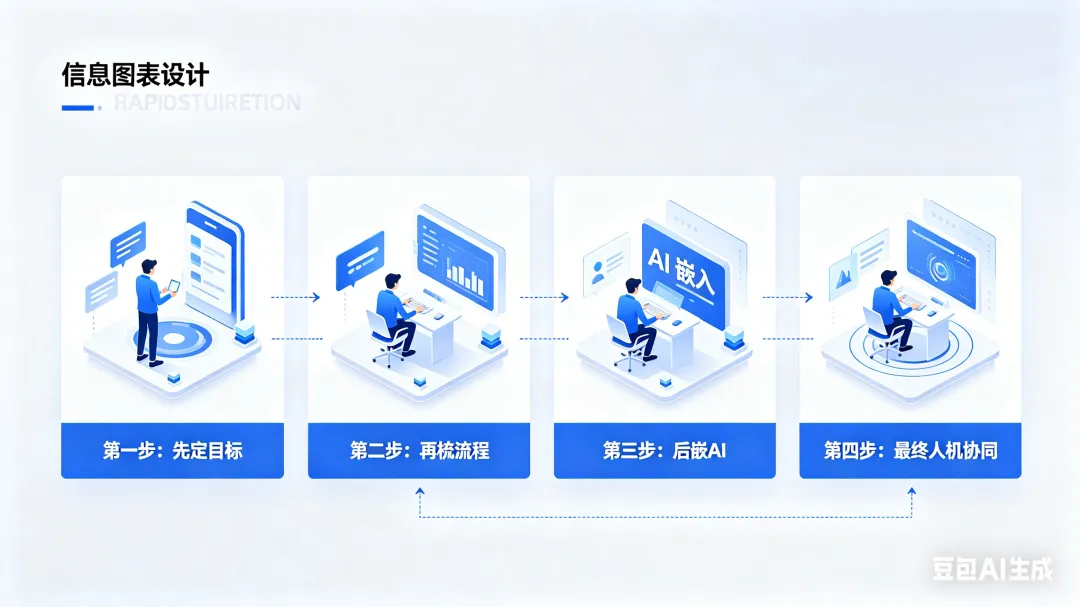 先定目标 → 再梳流程 → 后嵌AI → 最终人机协同。