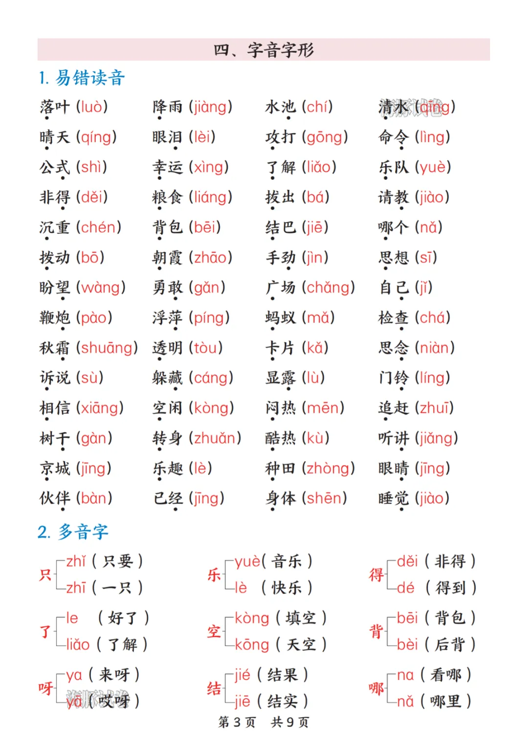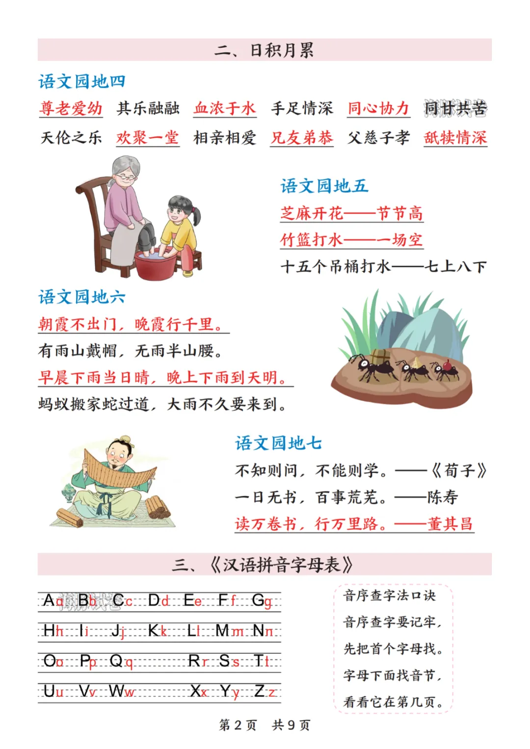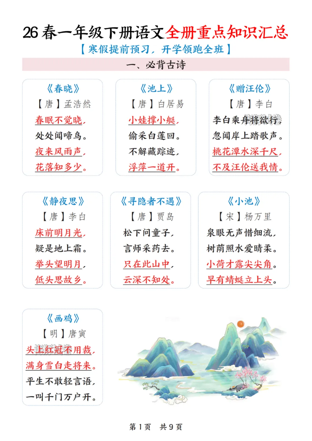 一年级(下)语文全册重点知识汇总 电子版可打印
