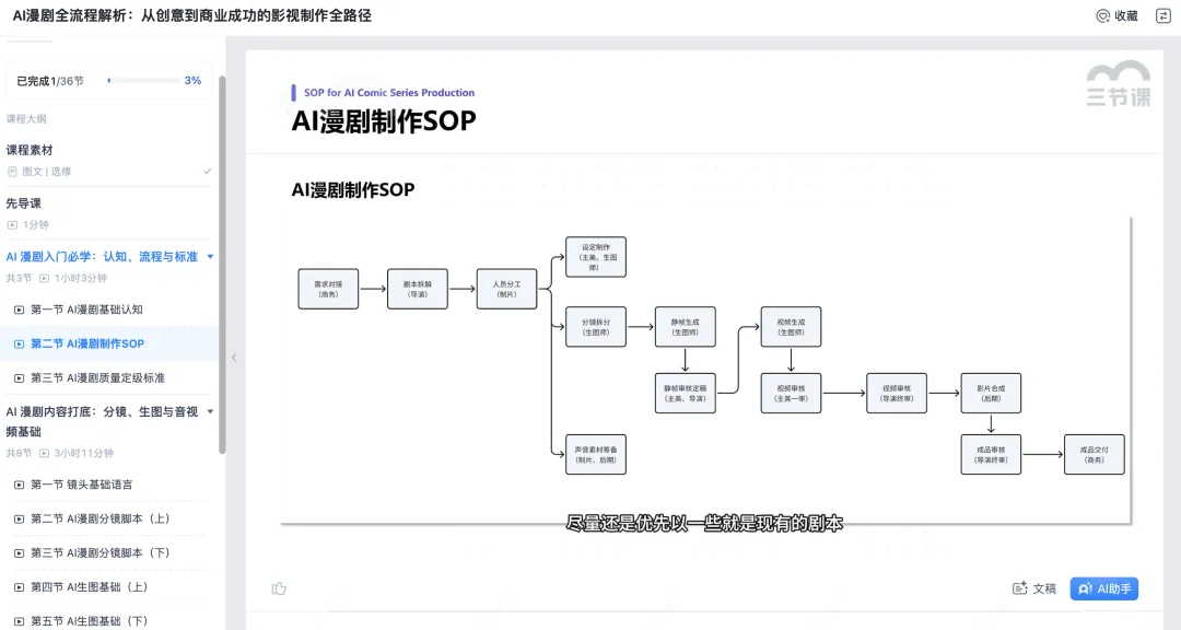 比如从创意构思、角色设定、分镜设计,到成片输出、上线变现,每一个环节都给你标准化的操作手册。