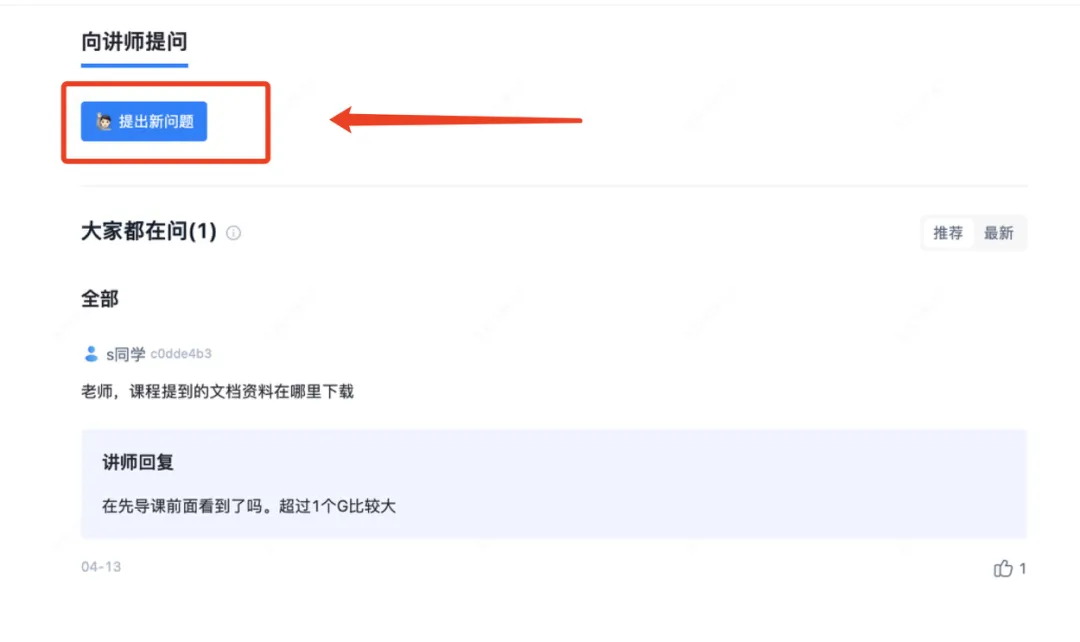 内容有不懂的问题也可以在下方向讲师提问,老师看到就会回复喔~