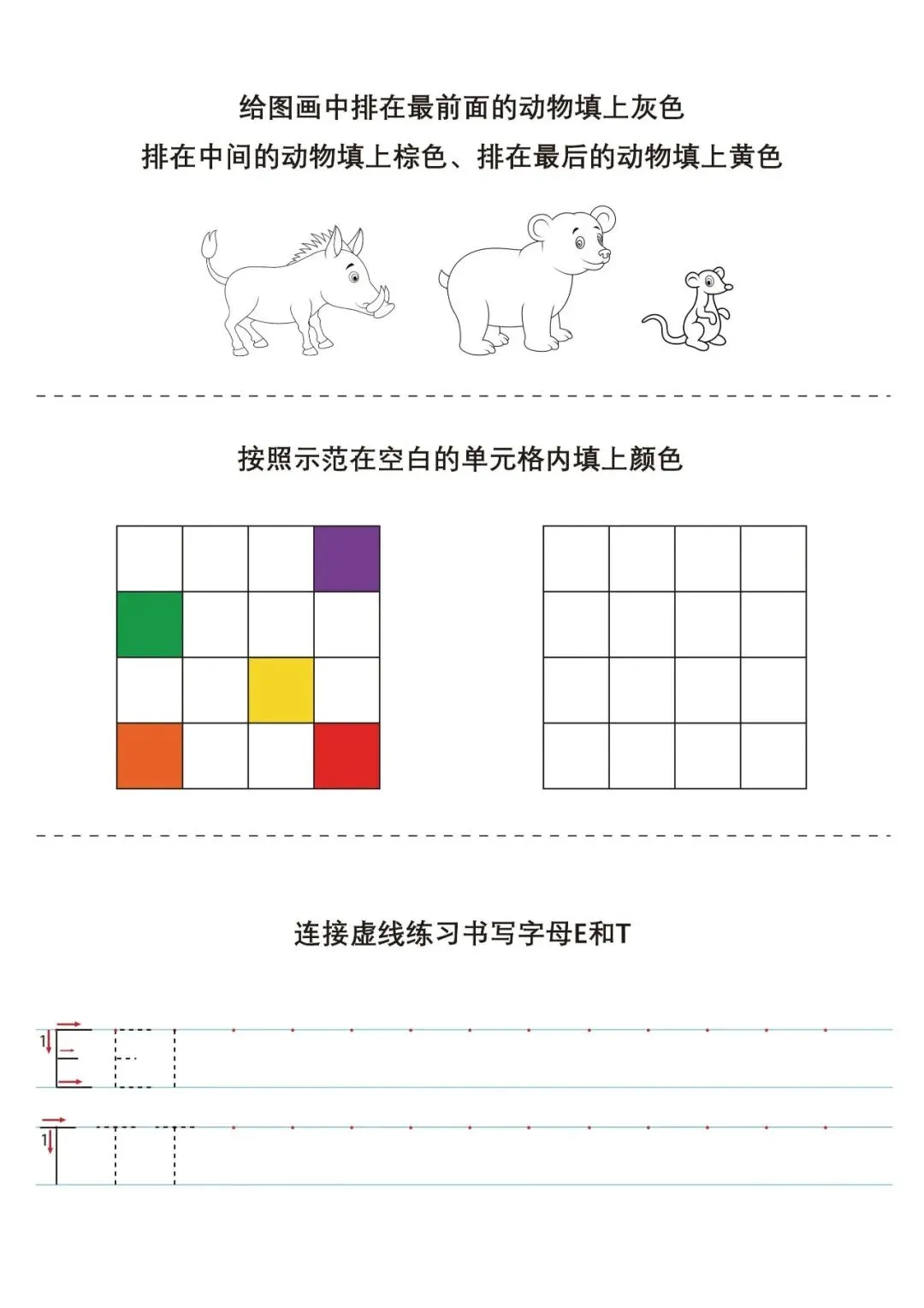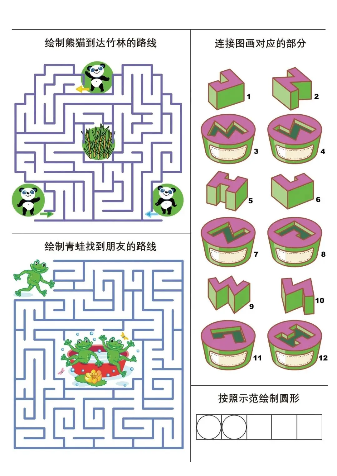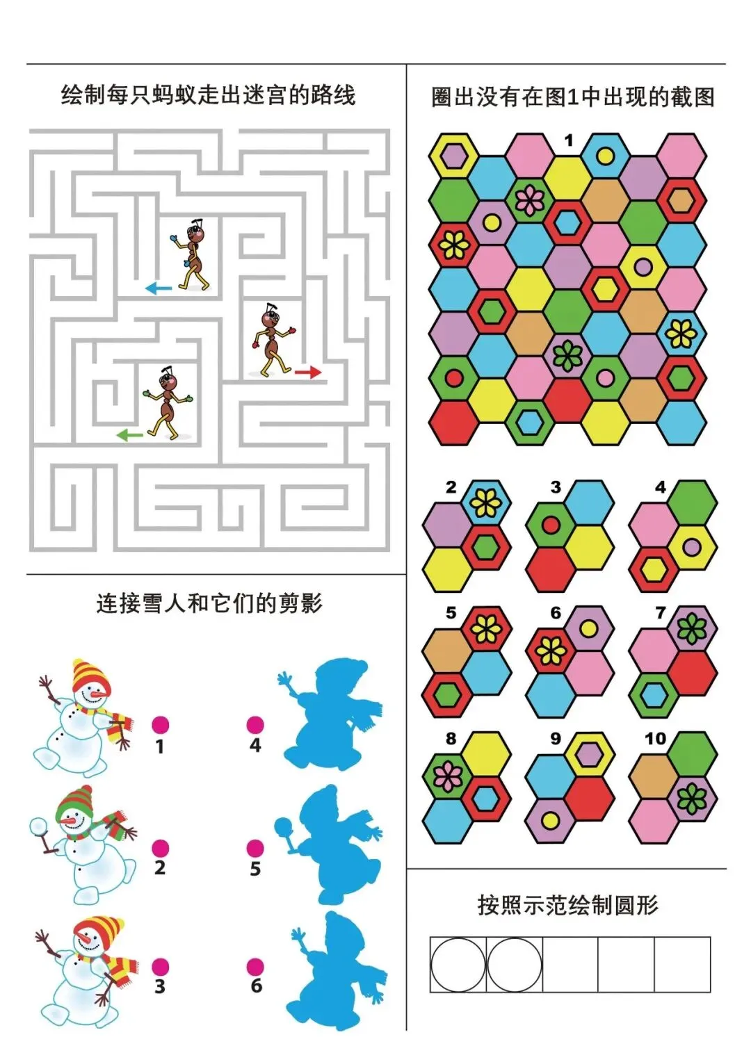 大家好,这里是淘学学资料库,这份《专注力综合练习 2》,完整 pdf 电子档共14页。这份资料专为孩子设计专注力综合训练,包含涂色、连线、书写、找不同、迷宫、找剪影、配对、数数、找路线等多种趣味题型,通过视觉观察、手眼协调、逻辑对比等方式,全面锻炼孩子的注意力、观察力与耐心,题型简单有趣、形式多样,适合日常练习提升专注时长与细致度。这份资料以游戏化形式开展专注力训练,包含字母书写、图形模仿、迷宫闯关、物品配对、细节对比等内容,每道题都能让孩子在动手操作中集中注意力,有效改善做事马虎、注意力不集中的问题,题型丰富不枯燥,既能锻炼孩子的视觉分辨能力,也能提升思维灵活性,是幼小衔接阶段提升专注力的实用练习。