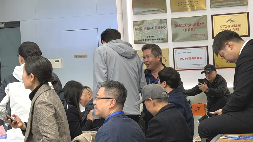 本次活动由百富科创花园、秦创原(昆山)AI+孵化器、昆山开发区科技企业孵化器协会主办,英才智创、驭泽科技联合协办,吸引了创投基金代表、资深评委、创业项目团队到场,线上观众同步见证创新力量绽放。