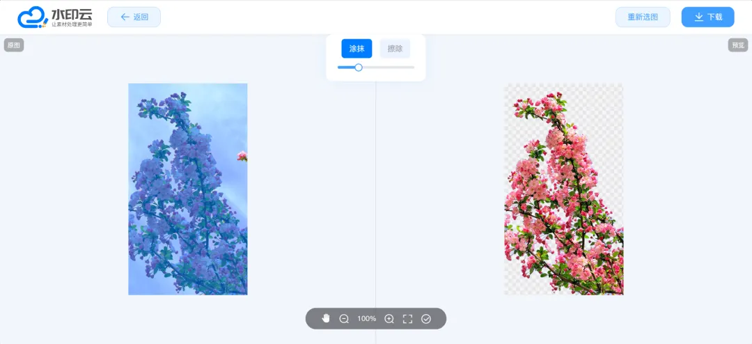选择标注 “发丝级精度”“边缘无白边” 的工具,如水印云、Vanceai