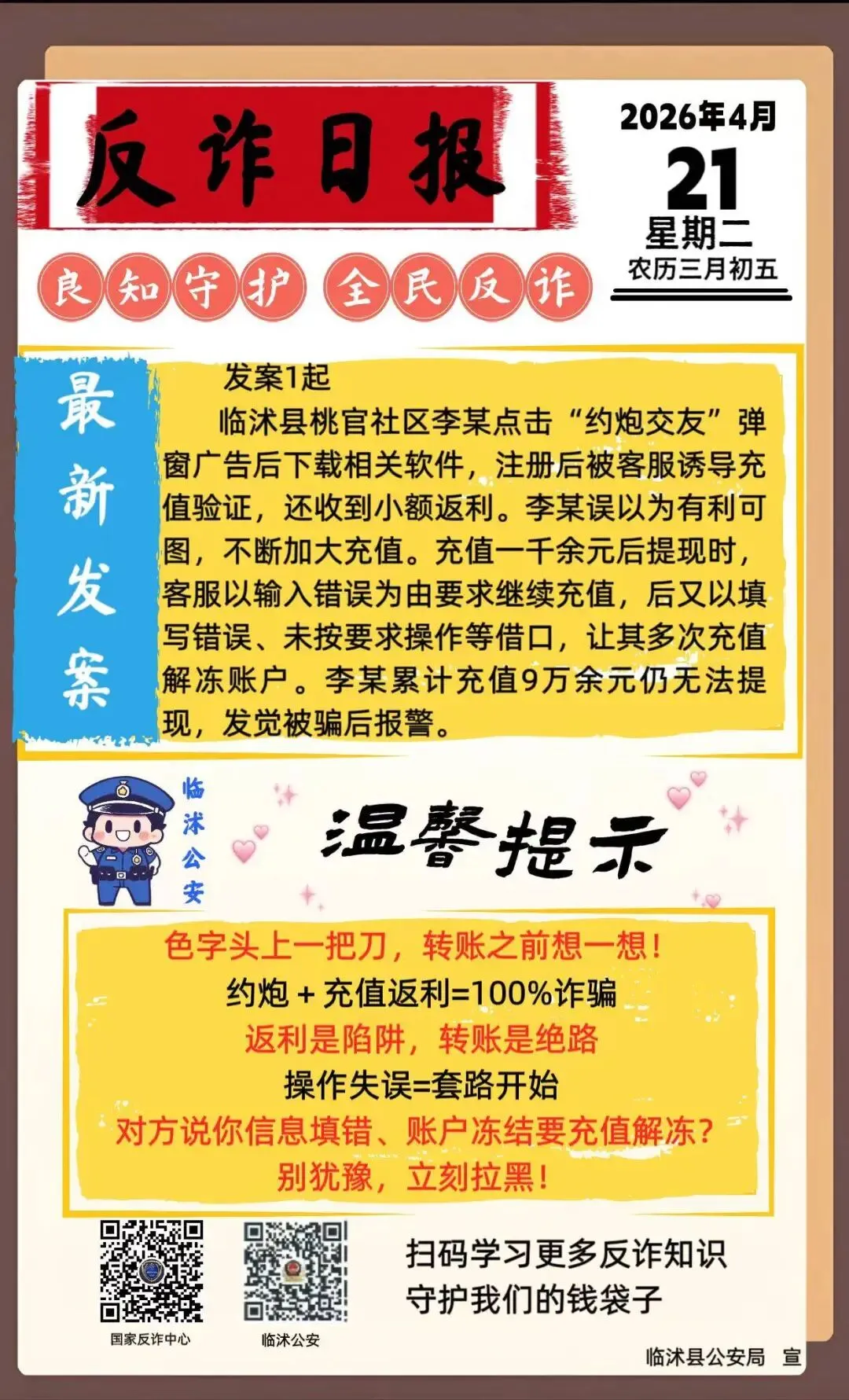 临沭桃官社区李某点个弹窗下载软件,9 万余元被骗光