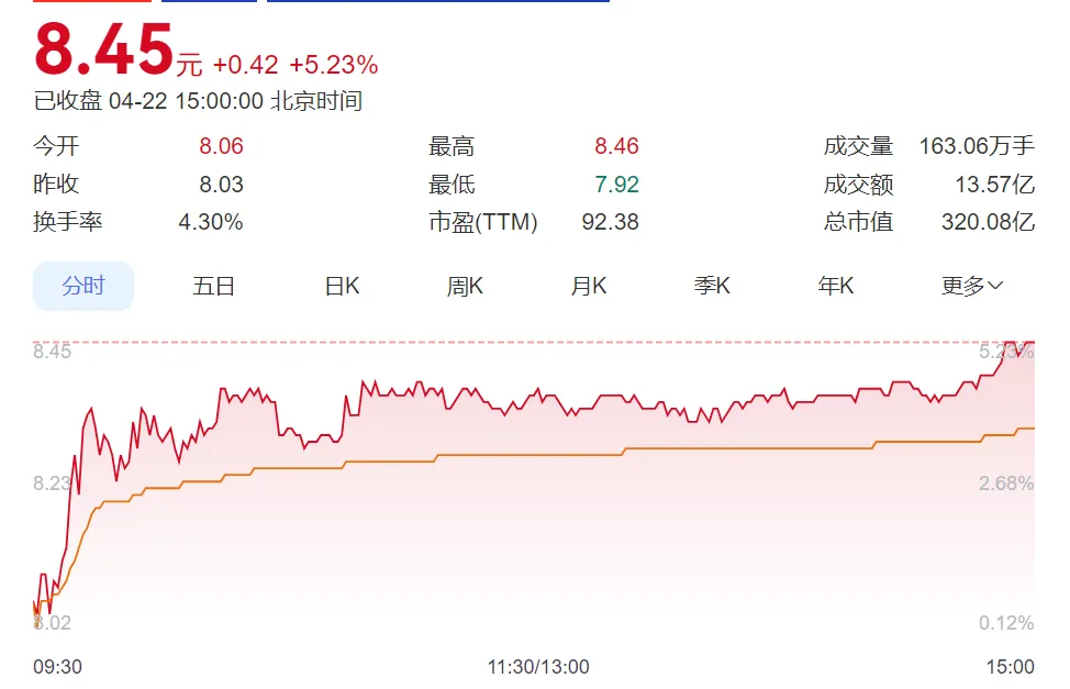 今天盘中一度压制在8.38,38线那2万手压单仿佛一道跨越不过去的天堑,股友劝我赶紧跑,必然会下杀一波……