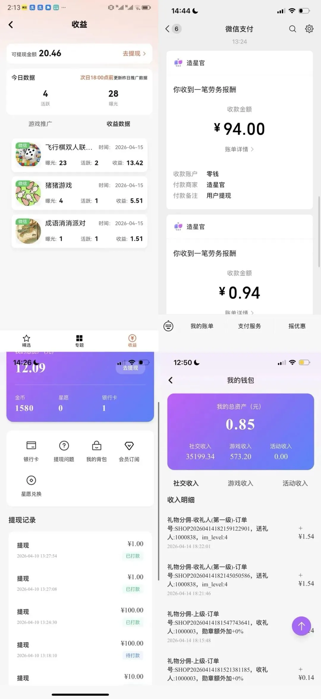 1.自己玩游戏+看广告(收入主要来源)