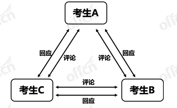 A 号考生集中依次评论 B、C 号考生;B、C 号考生依次表态回应。