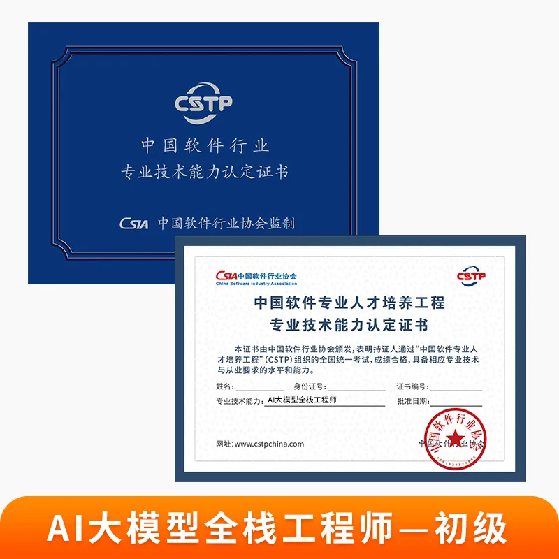 三等奖及以上可获得初级【AI大模型全栈工程师】【AIGC应用开发工程师】初级技能证书的申领资格;