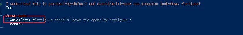 Step2:安装模式,我选择默认的快速开始,直接按回车键继续。