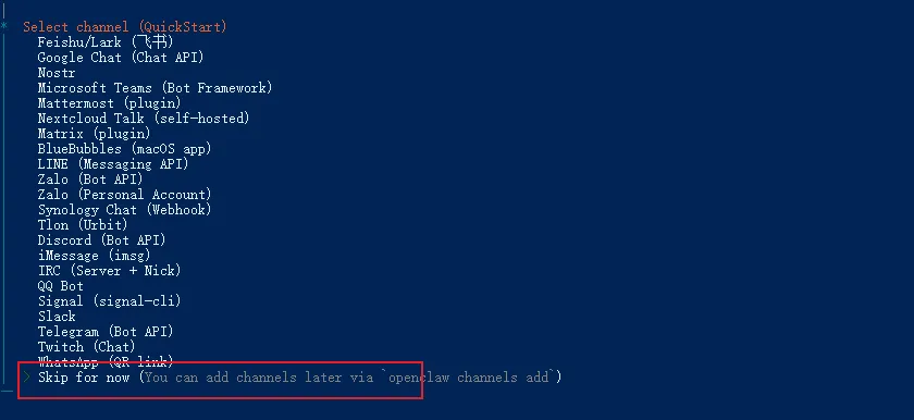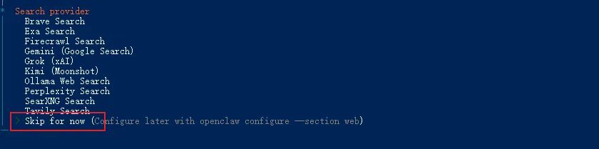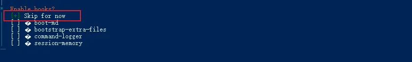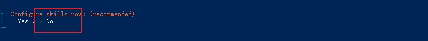 Step5:接下来的几步先不做配置,选择”Skip for now”和”No”就行,参考下图所示按回车继续,直到显示配置完成。