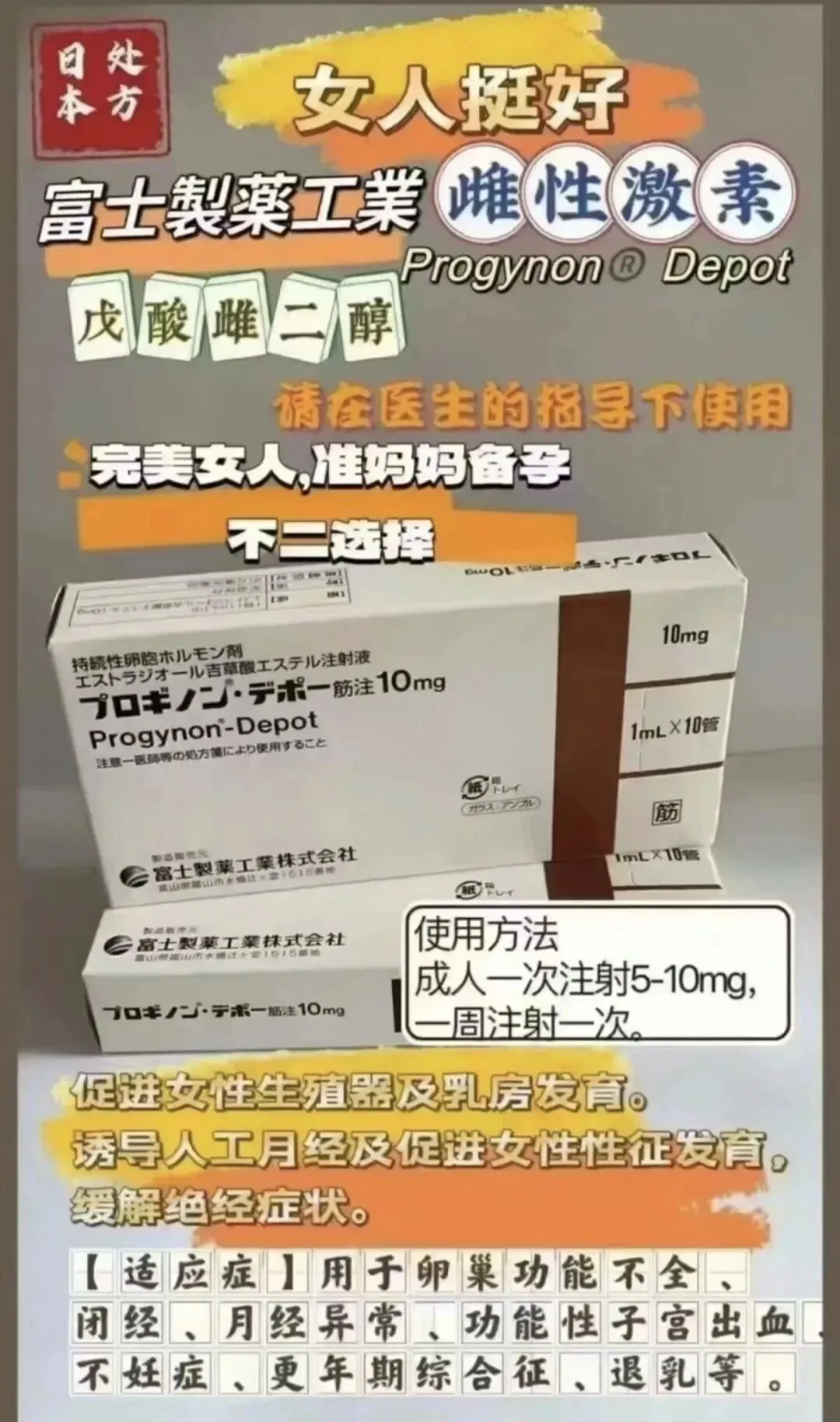 【使用说明】富士戊酸雌二醇吉草酸酯(プロギノン・デポー筋注10mg)瑞卢戈利