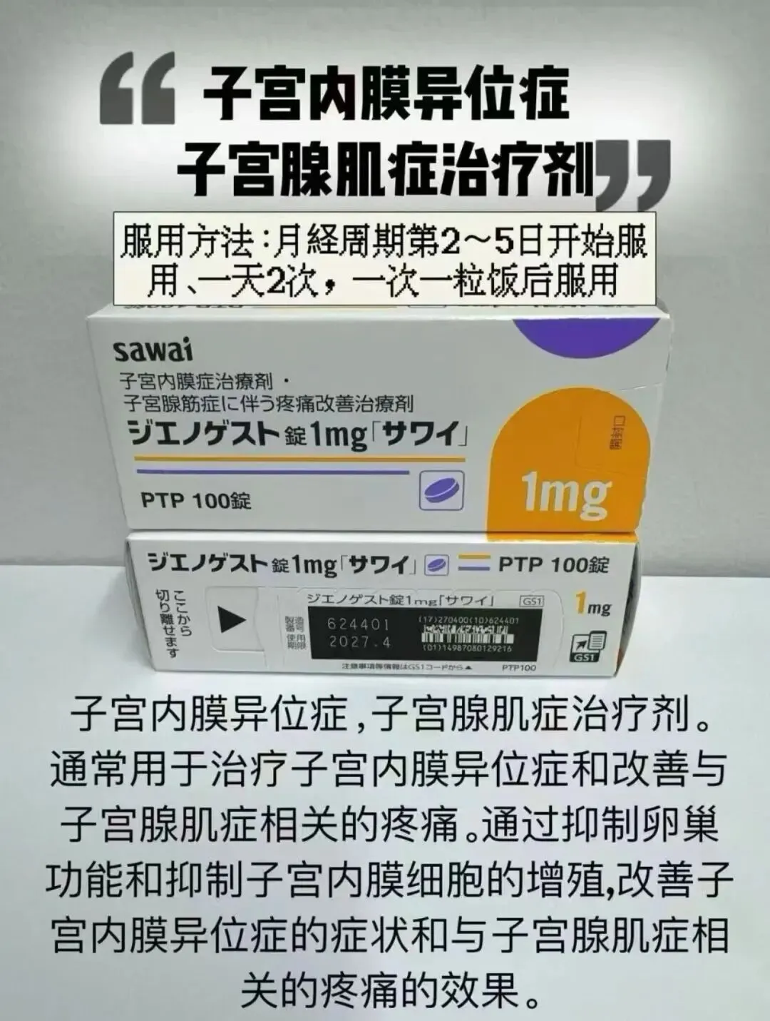 Sawai子宫内膜异位症,子宫腺肌症治疗剂。通常用于治疗子宫内膜异位症和改善与子宫腺肌症相关的疼痛。通过抑制卵巢功能和抑制子宫内膜细胞的增殖,改善子宫内膜异位症的症状和与子宫腺肌症相关的疼痛的效果。服用方法:月経周期第2~5日开始服用、一天2次,一次一粒饭后服用。