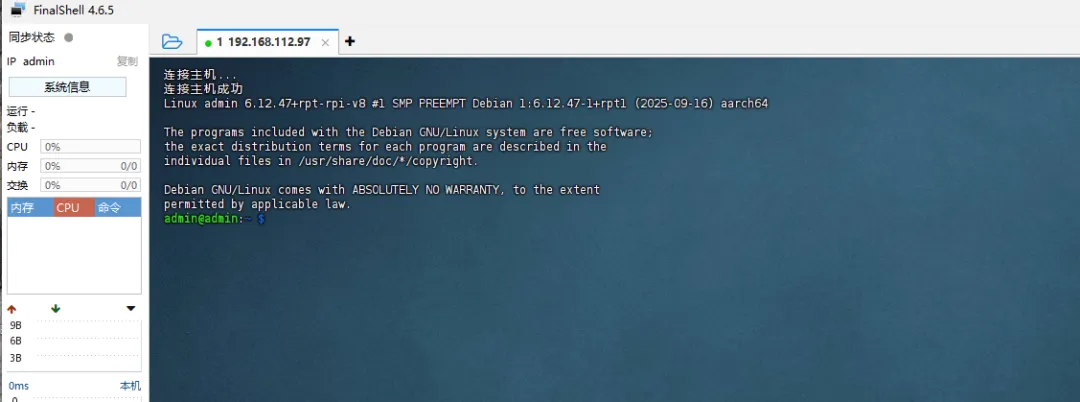 启动完成、插入网线之后,第一次使用ifconfig查看ip,然后使用shell工具进行连接ssh连接。这样我们就能直接桌面端来操控了。
