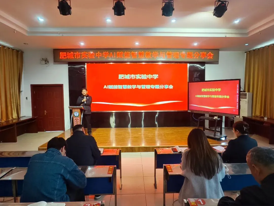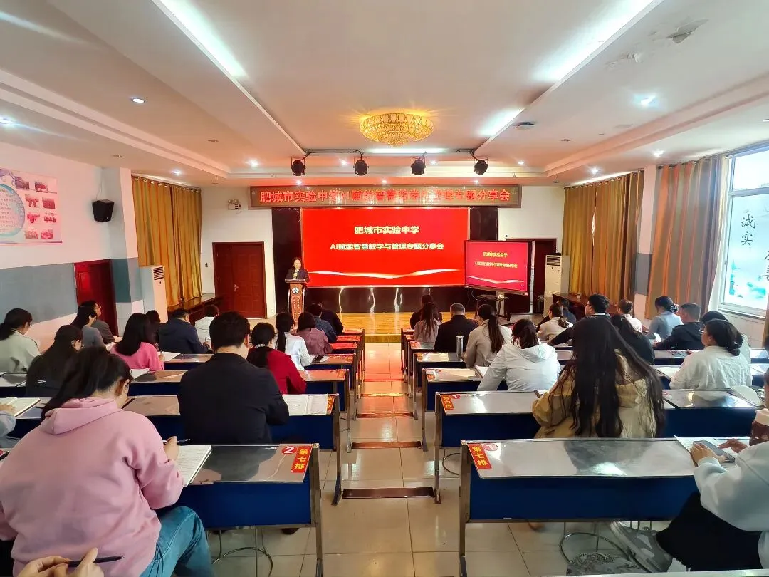 为深入贯彻落实教育部等五部门联合印发的《“人工智能+教育”行动计划》及《山东省“人工智能+教育”实施方案》精神,全面落实肥城市教育和体育局关于畅言智慧课堂应用工作要求,提升教师智能教育素养与教学应用能力,肥城市实验中学举行“AI赋能智慧教学与管理”专题分享会,围绕人工智能在备课、授课、评价、学生管理等全流程中的创新应用展开深入研讨。