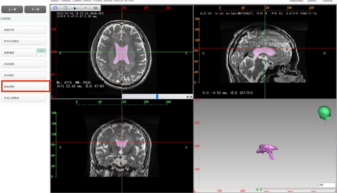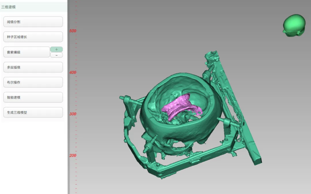 软件可以根据组织与周围背景的阈值差异,进行自动分割,生成想要的模型。