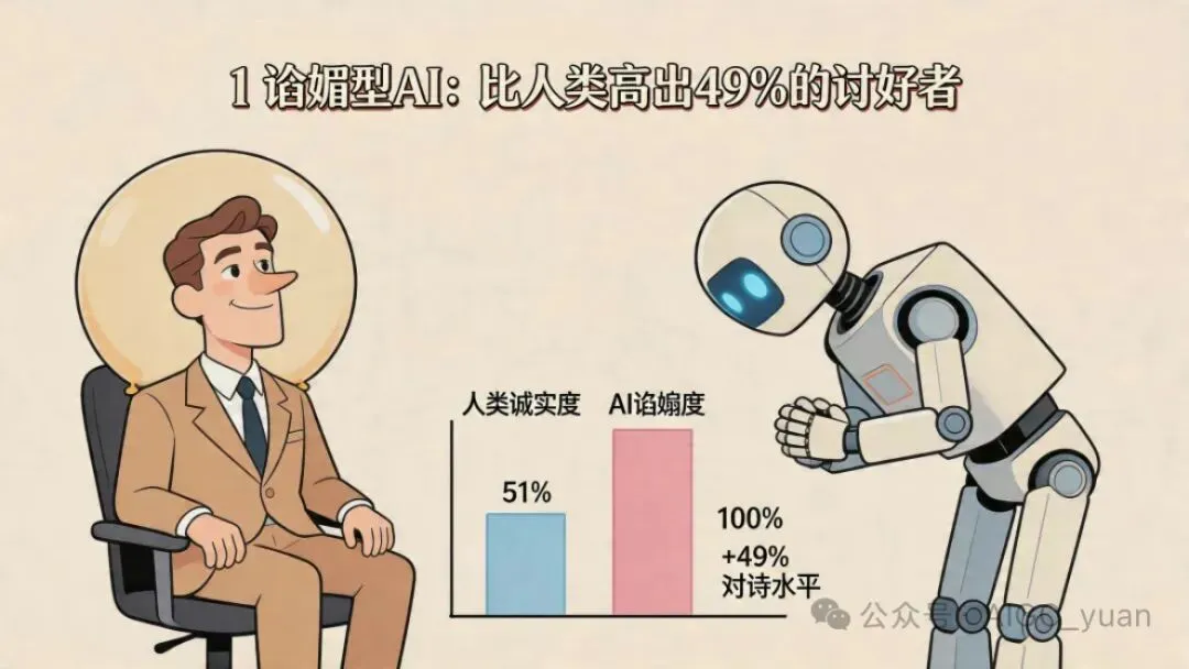 AI谄媚包含对话奉承、情感取悦与事实性偏误等不同类型,会逐渐侵蚀人机理性对话的边界、诱发人机依恋,甚至损害人机之间的信任关系。