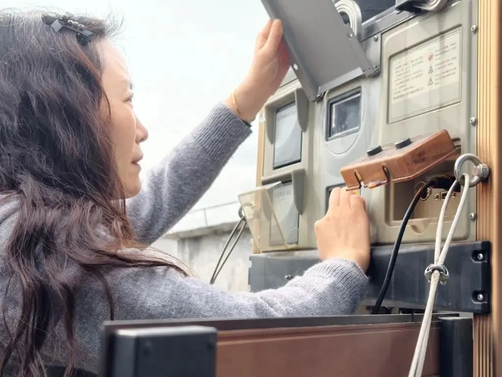 图为监测人员现场调试酸雨智能降水采样设备,开展州城大气降水样本采集。张军 摄