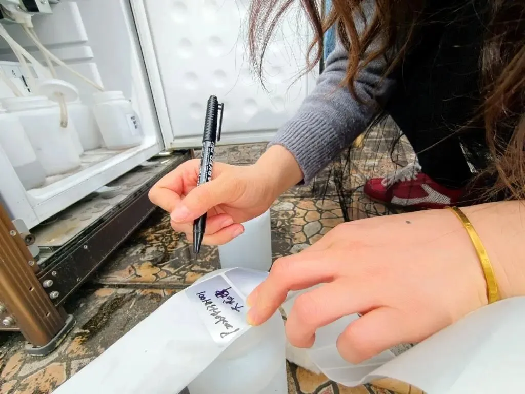 图为规范标注采集水样信息,确保样品溯源可查。张念胜 摄