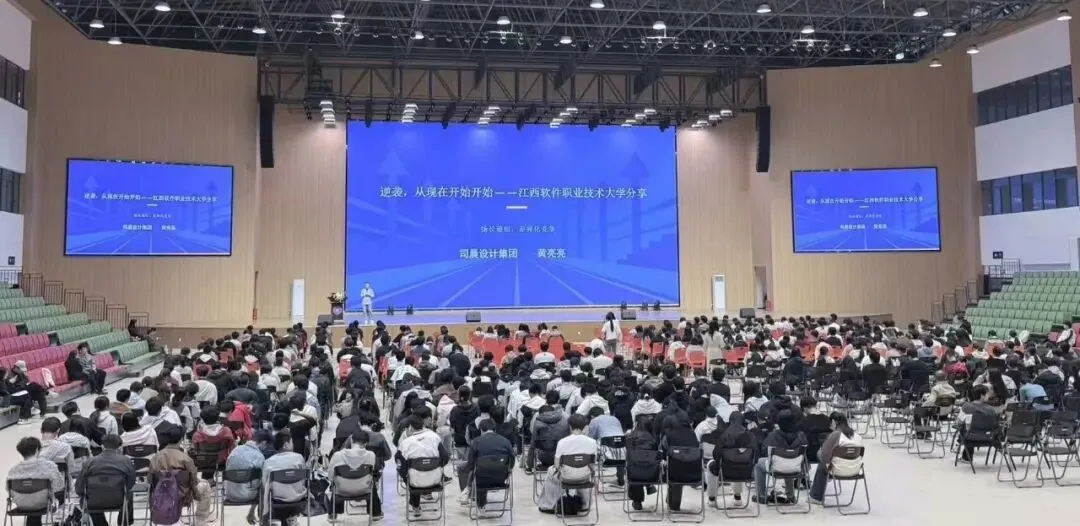 为提升学生求职竞争力,引导树立正确就业观,4月16日,江西软件职业技术大学招生就业处在综合楼演播厅举办专题就业指导讲座。本次讲座特邀浙江司晨设计集团黄总监主讲,以“逆袭,从现在开始”为主题,围绕”能力-态度-学历”三大核心维度展开分享,全校570余名学生到场参与。