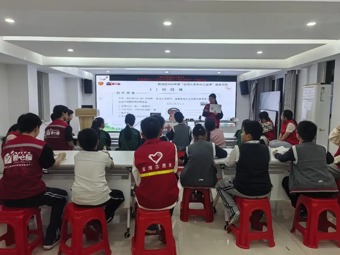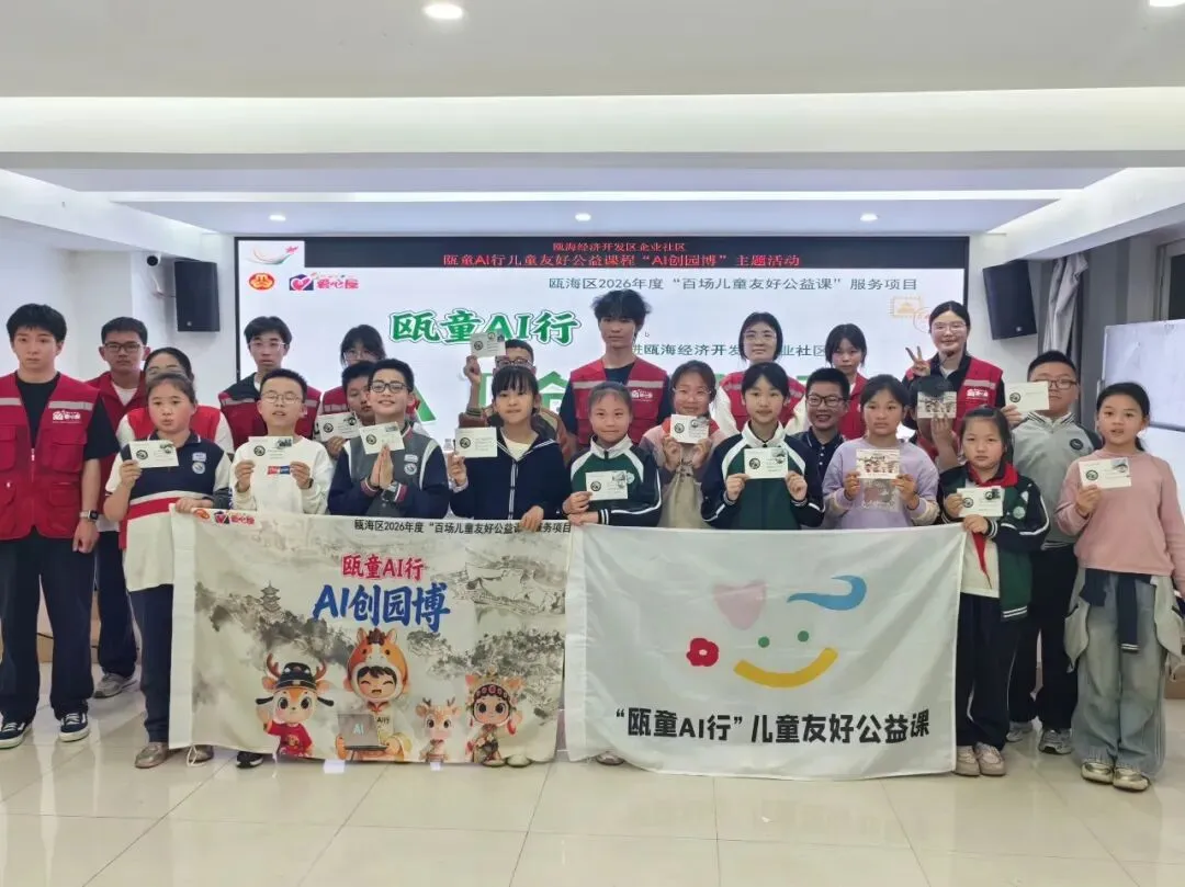 为引导儿童深入了解园博园、共同迎接园博盛会,同时打造一个尊重儿童表达、鼓励儿童创造的友好环境,4月10日晚,瓯海经济开发区企业社区携手瓯海区妇女联合会、温州爱心屋网络公益宣传服务中心,在社区妇儿驿站开展了充满科技感与童趣的“儿童友好公益课程‘AI创园博’邀请函设计主题活动”。22名大朋友、小朋友牵手,开启了一段融合认知、游戏、艺术与科技的创意之旅。