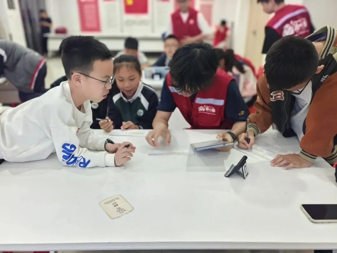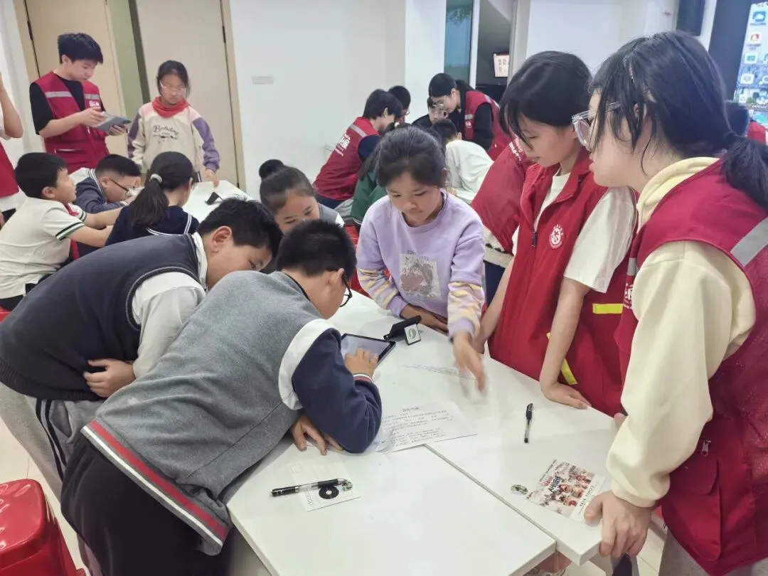 活动内容环环相扣,寓教于乐。课程伊始,老师先带领孩子们认识邮票——这一代少年人中已较少使用的通信“小方寸”。通过互动发言,孩子们踊跃梳理出邮票的构成要素:面值、图案、齿孔、发行地等。随后,老师巧妙融入园博园的各大主题场景图,将园林美景与邮票设计联系起来。为加深记忆,现场组织了小组轮流挑战游戏:每组需快速念出园博园各个地址名称,比准确、拼速度,现场欢声笑语不断,园博场景瞬间深植童心。