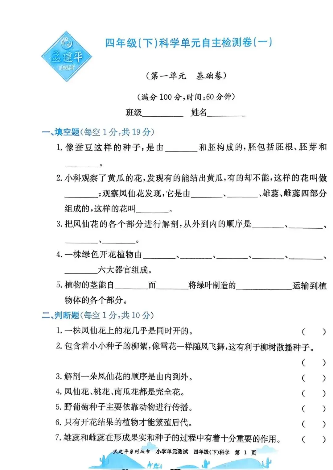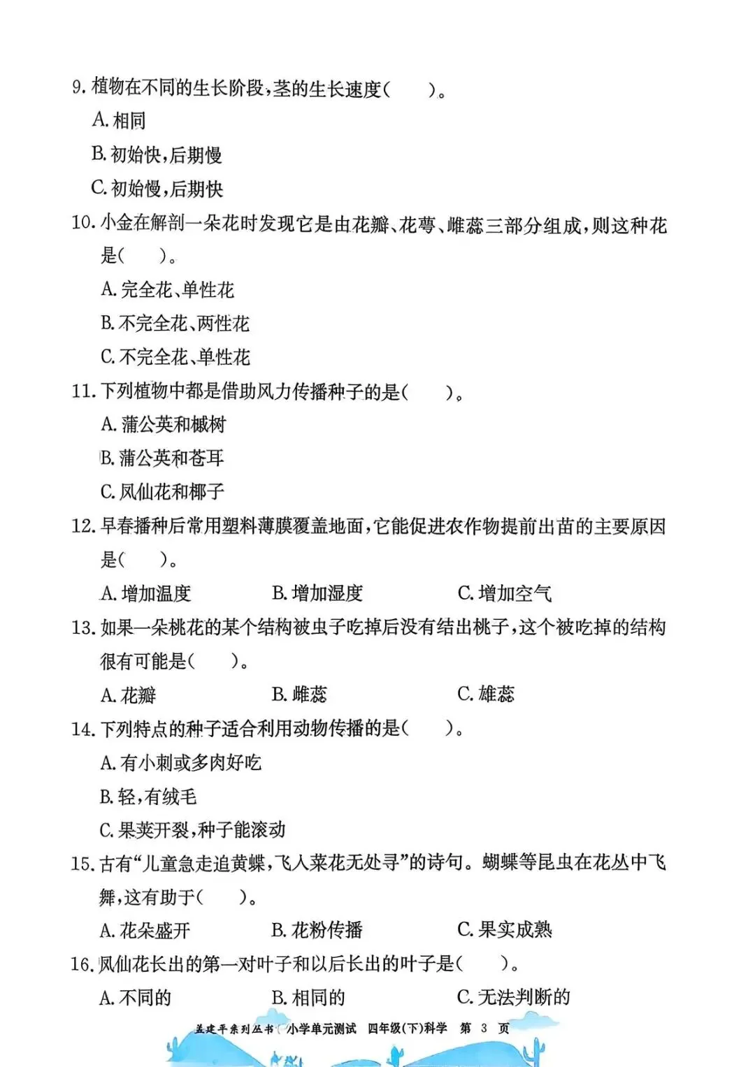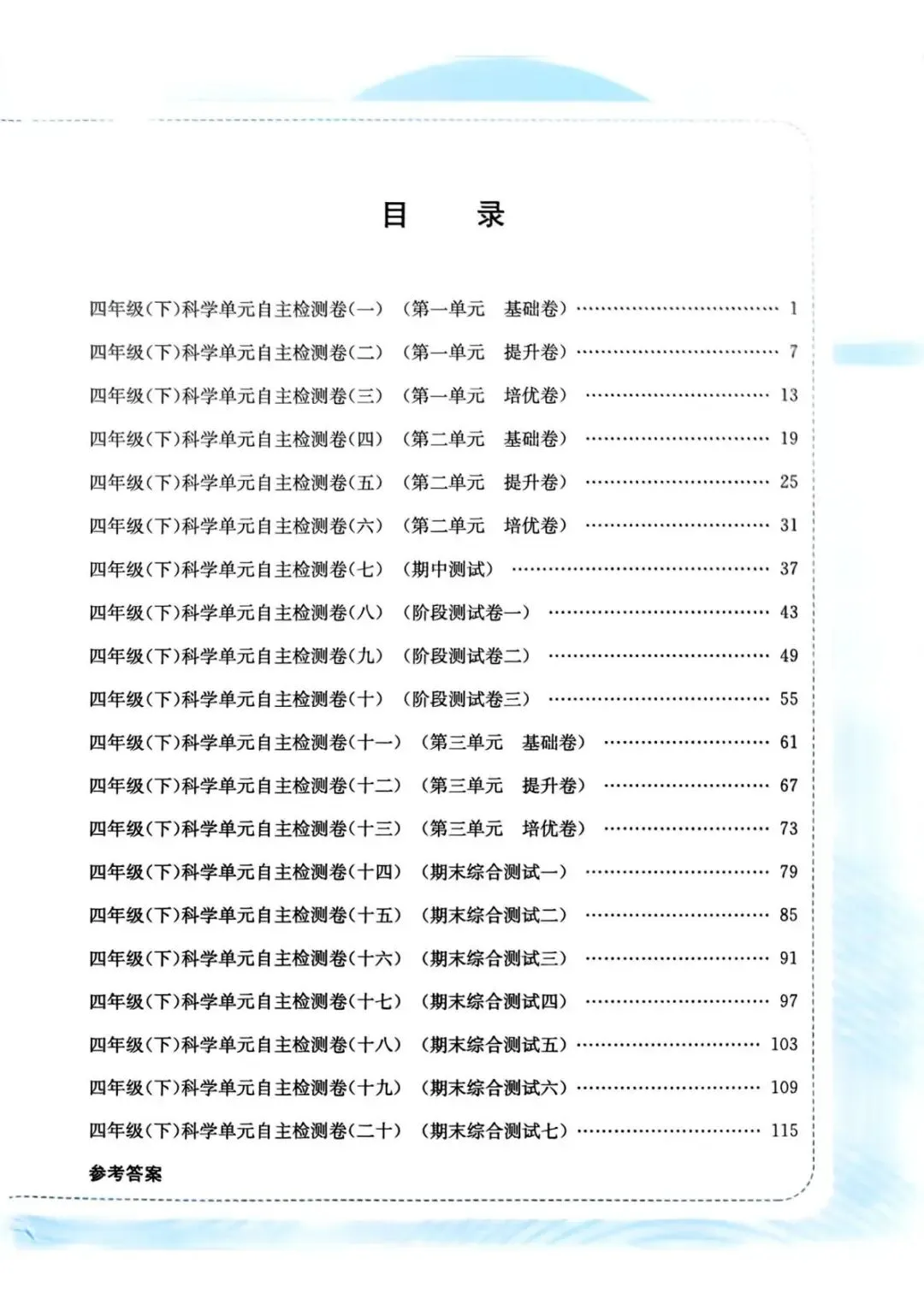 如需要电子版,请点击“阅读原文”,近期资料都在链接中四年级科学下册:最新版《孟建平单元测试卷》科学教科版,PDF全套可保存下载