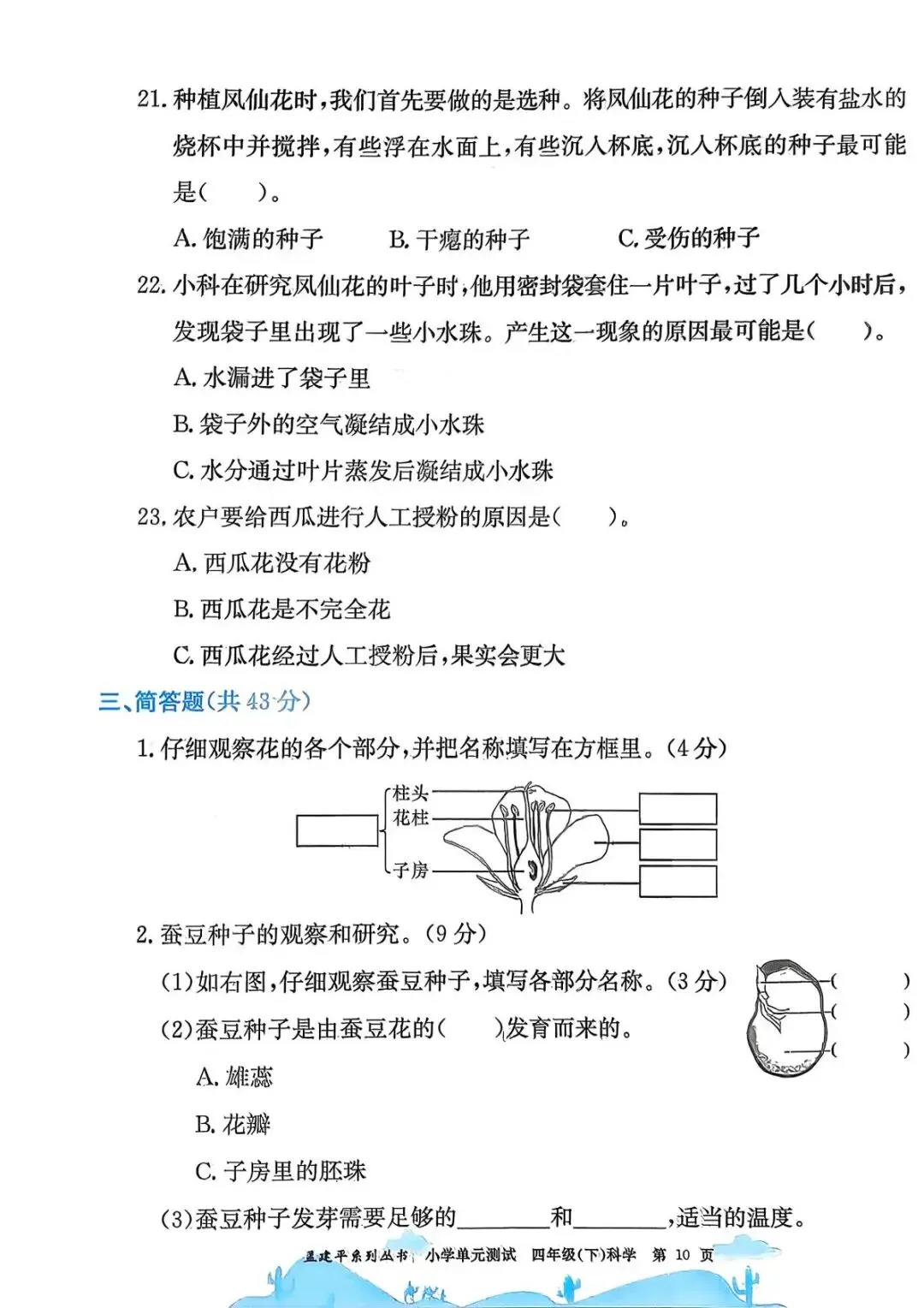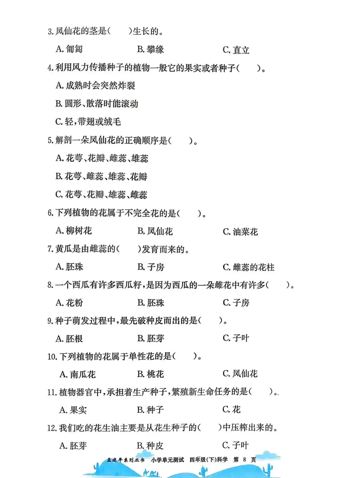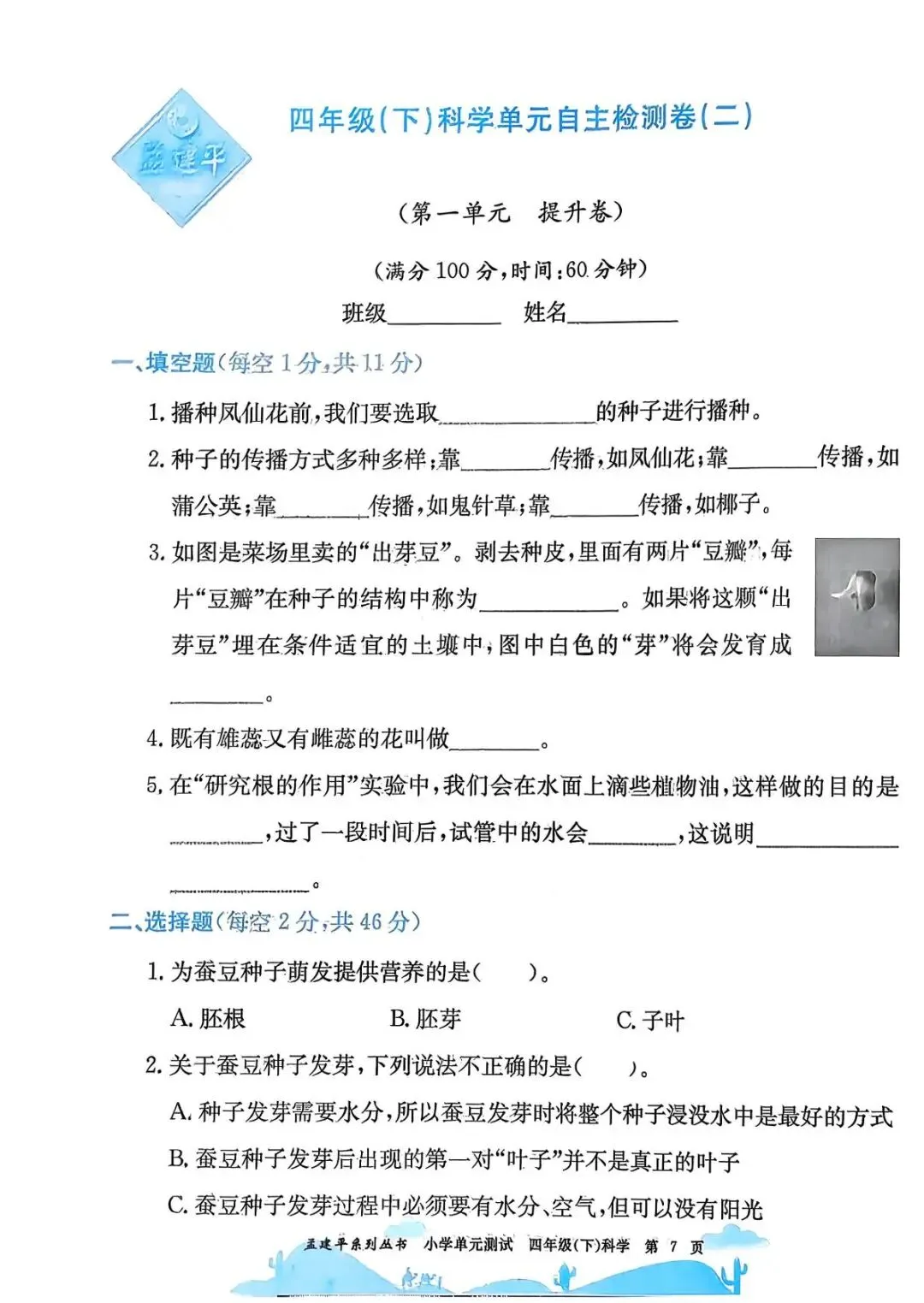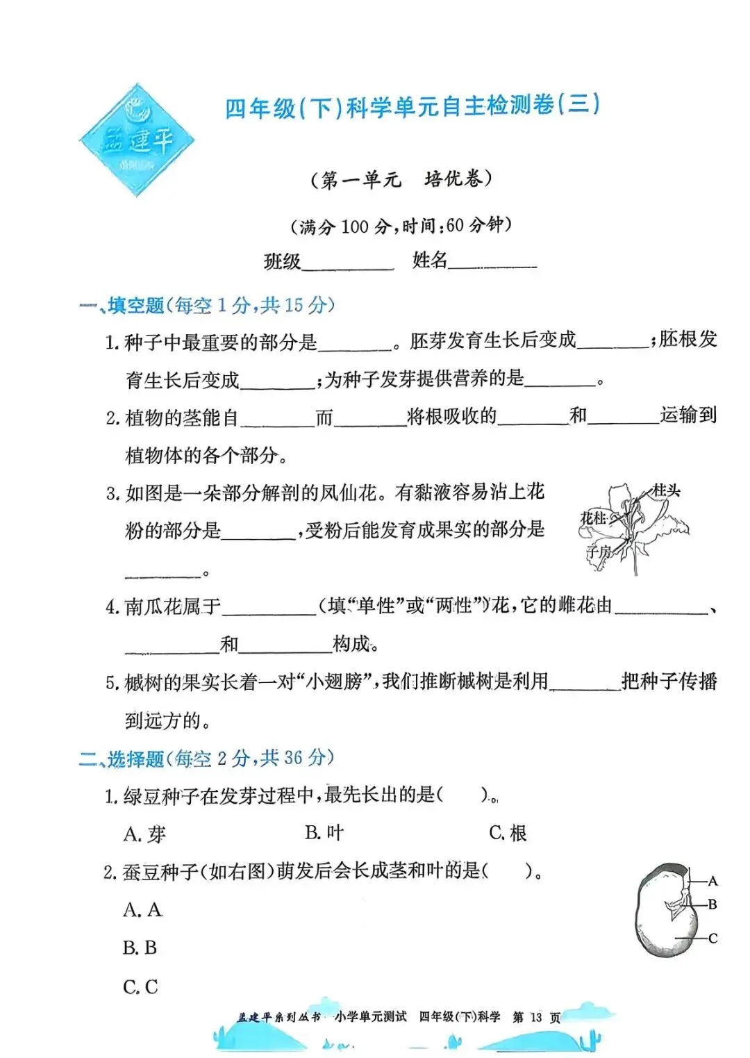 如需要电子版,请点击“阅读原文”,近期资料都在链接中四年级科学下册:最新版《孟建平单元测试卷》科学教科版,PDF全套可保存下载