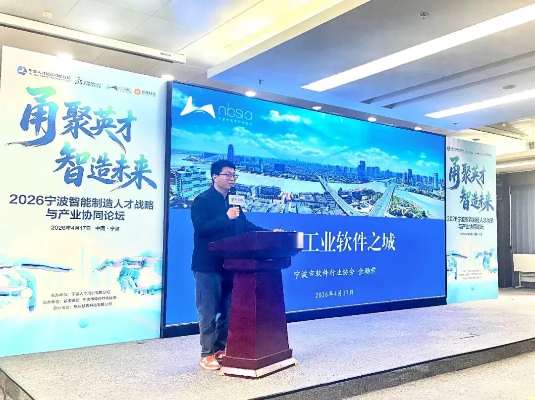 近日,由宁波人才培训有限公司主办,宁波市软件行业协会与达索系统共同协办的“2026宁波智能制造人才战略与产业协同论坛”在宁波人才大厦圆满落幕。本次论坛汇聚了政府部门、高校、龙头企业及行业协会的代表,共同聚焦智能制造时代下的人才战略与产业协同,其中,宁波市软件行业协会秘书长金励君分享《打造工业软件之城》,借鉴全球标杆发展模式,为宁波明确了“制造与软件协同”的升级路径。