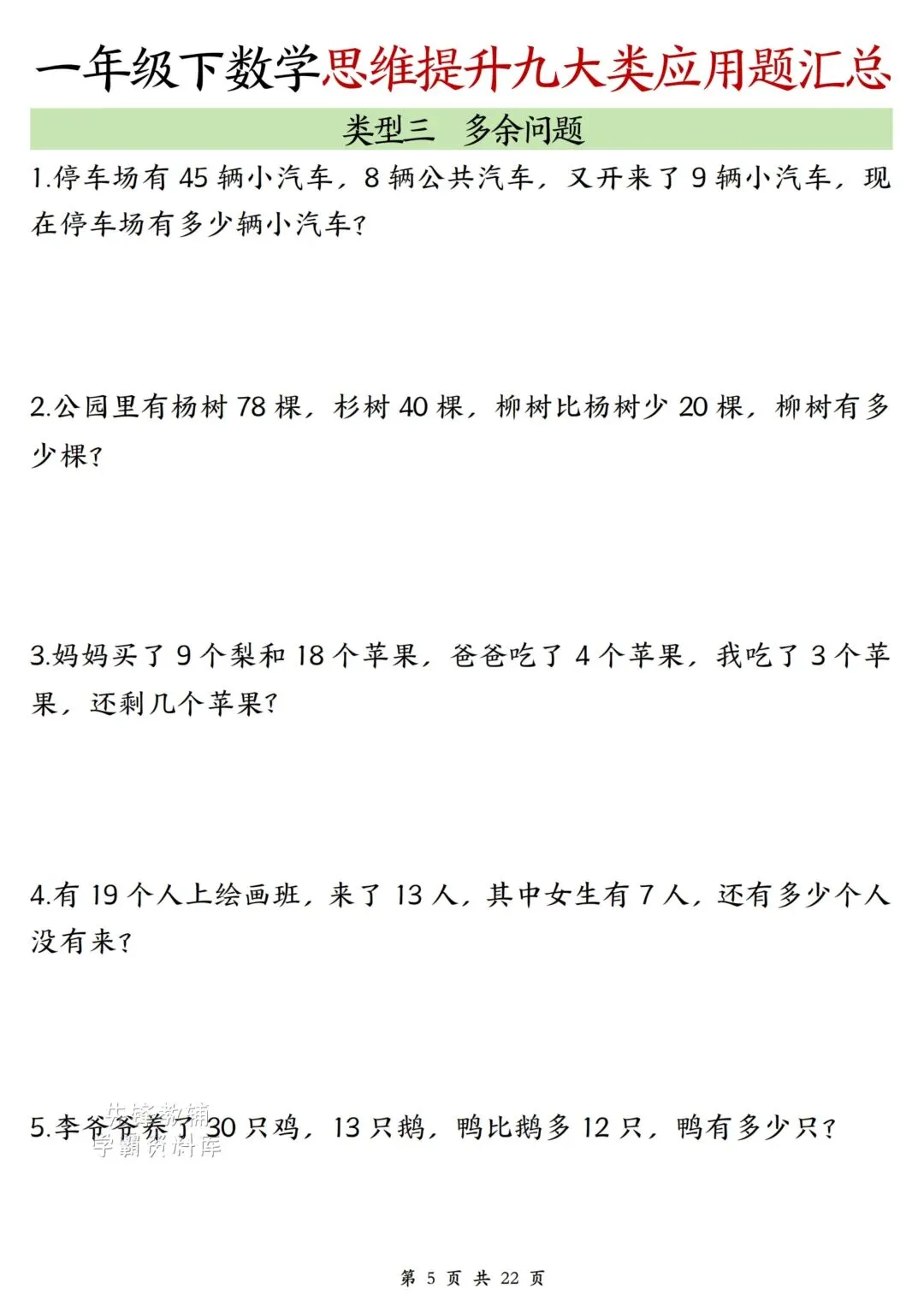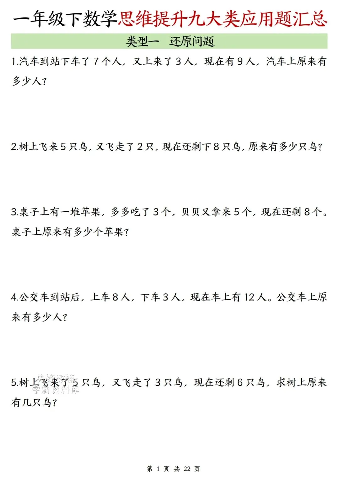 2026春最新版:《一年级数学下册思维提升九大类应用题汇总》可打印