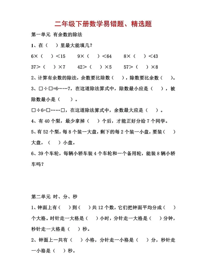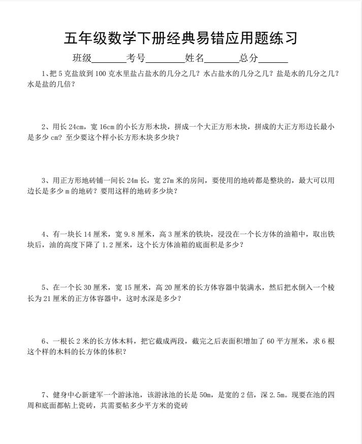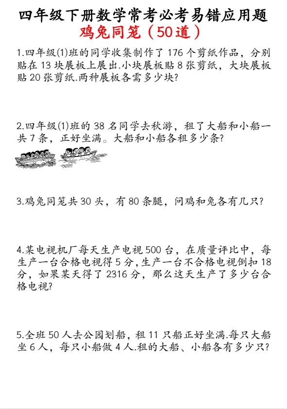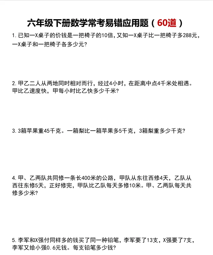 1-6年级下册数学应用题易错题汇总,可下载打印