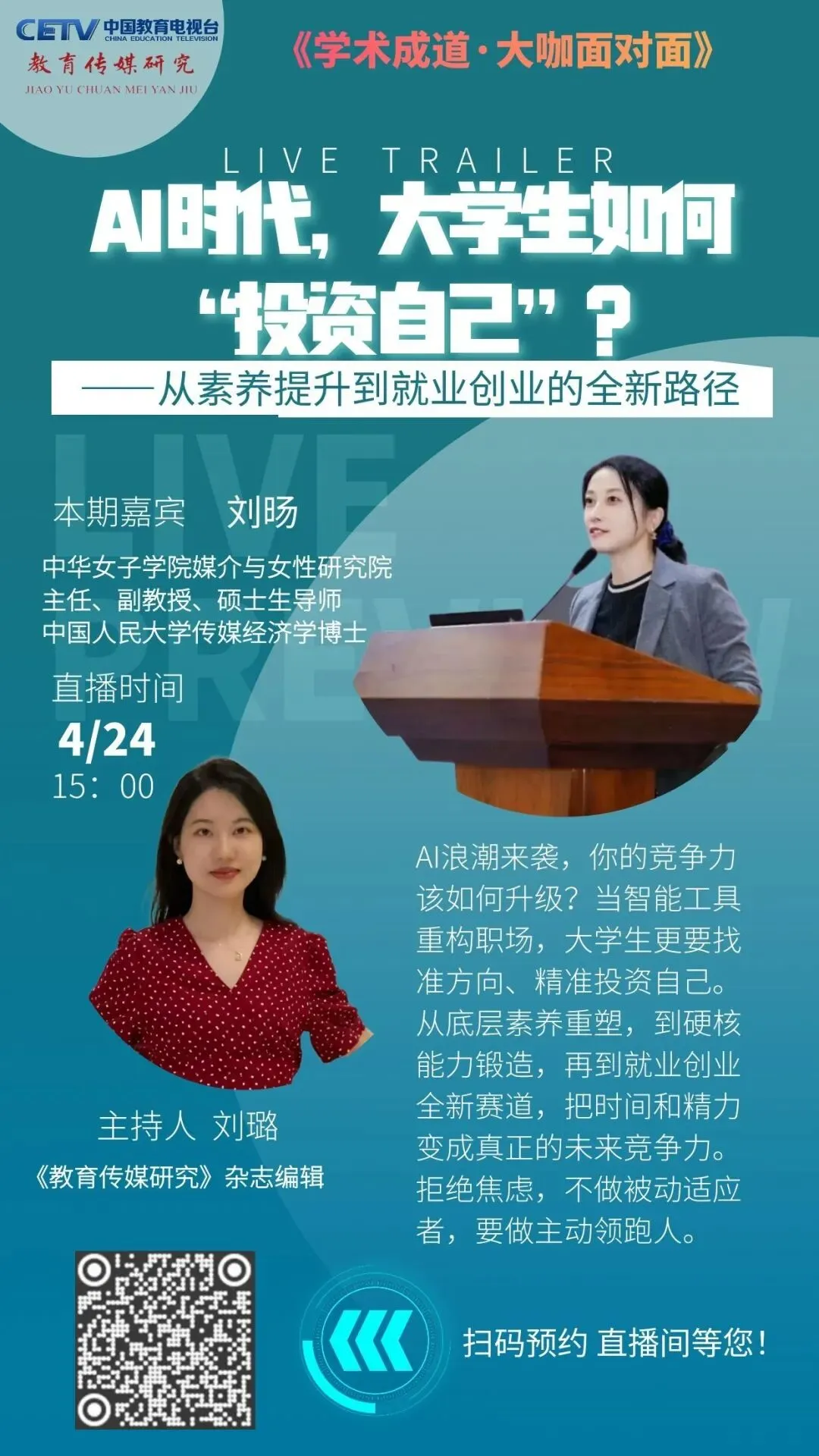 直播预告 | 对话刘旸:AI时代,大学生如何“投资自己”?——从素养提升到就业创业的全新路径