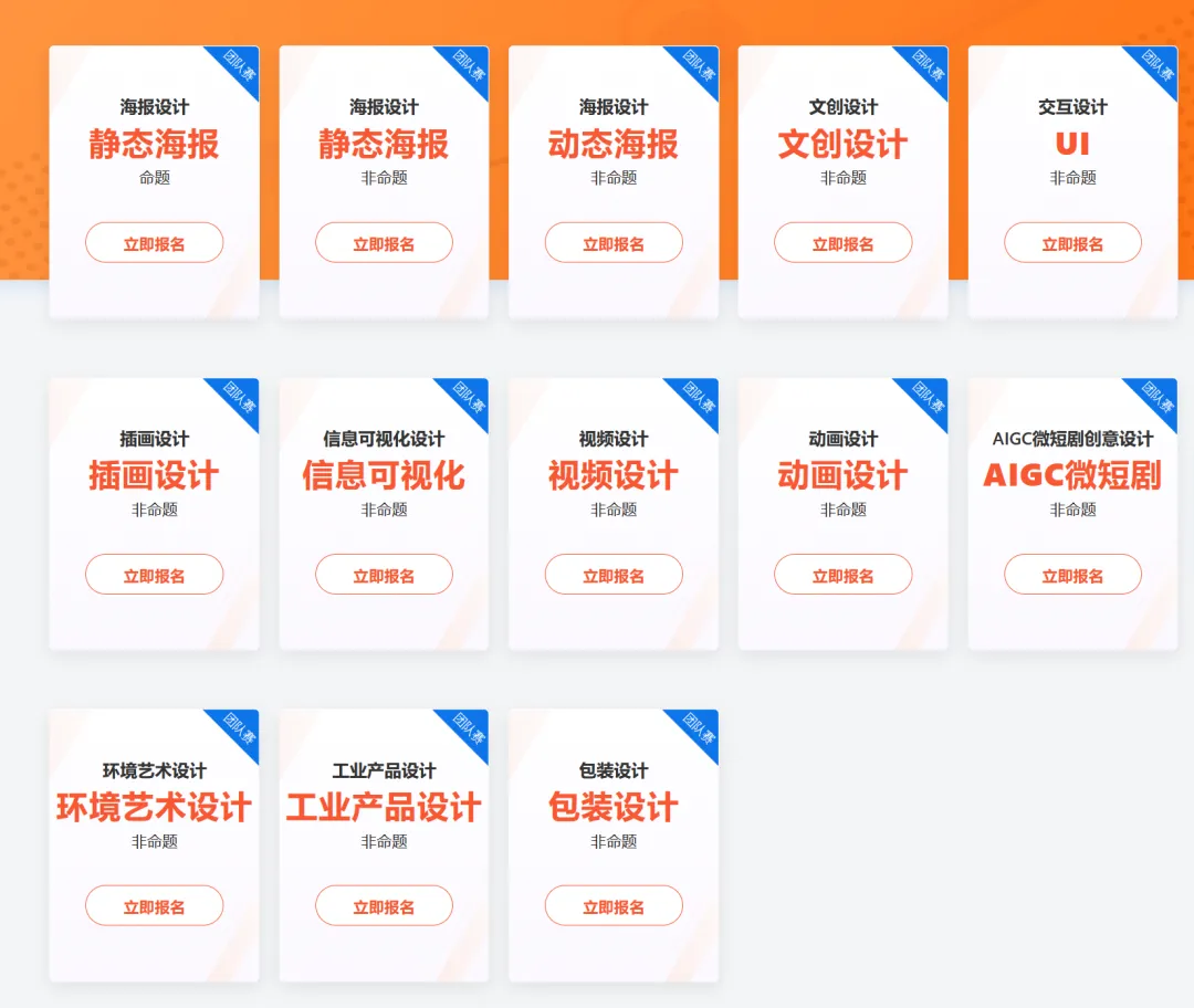 视觉艺术设计赛赛项内含有:海报设计、文创设计、交互设计、插画设计、信息可视化设计、视频设计、动画设计、AIGC微短剧创意设计、环境艺术设计、工业产品设计、包装设计等多个赛项。