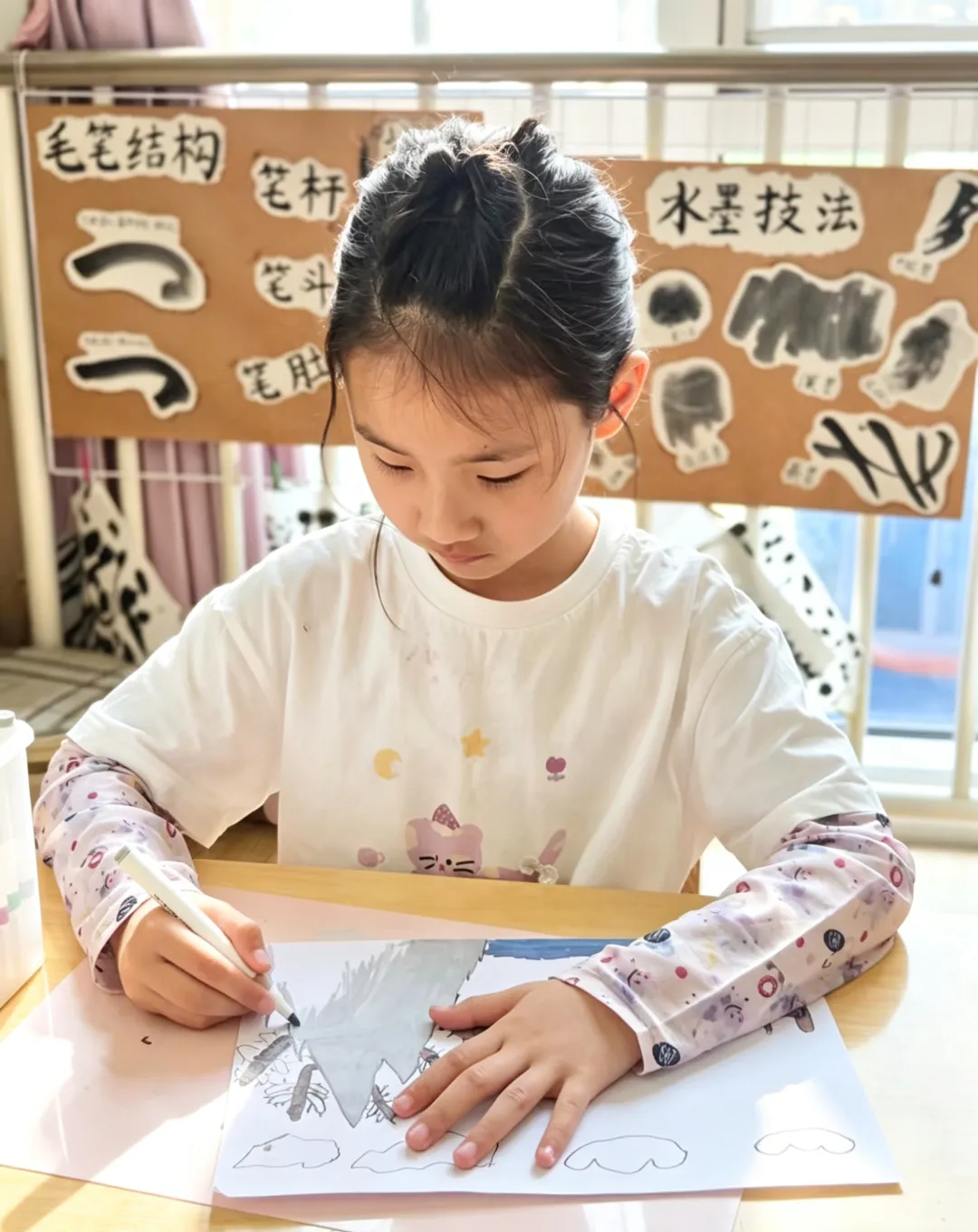 在画纸上细细勾勒
