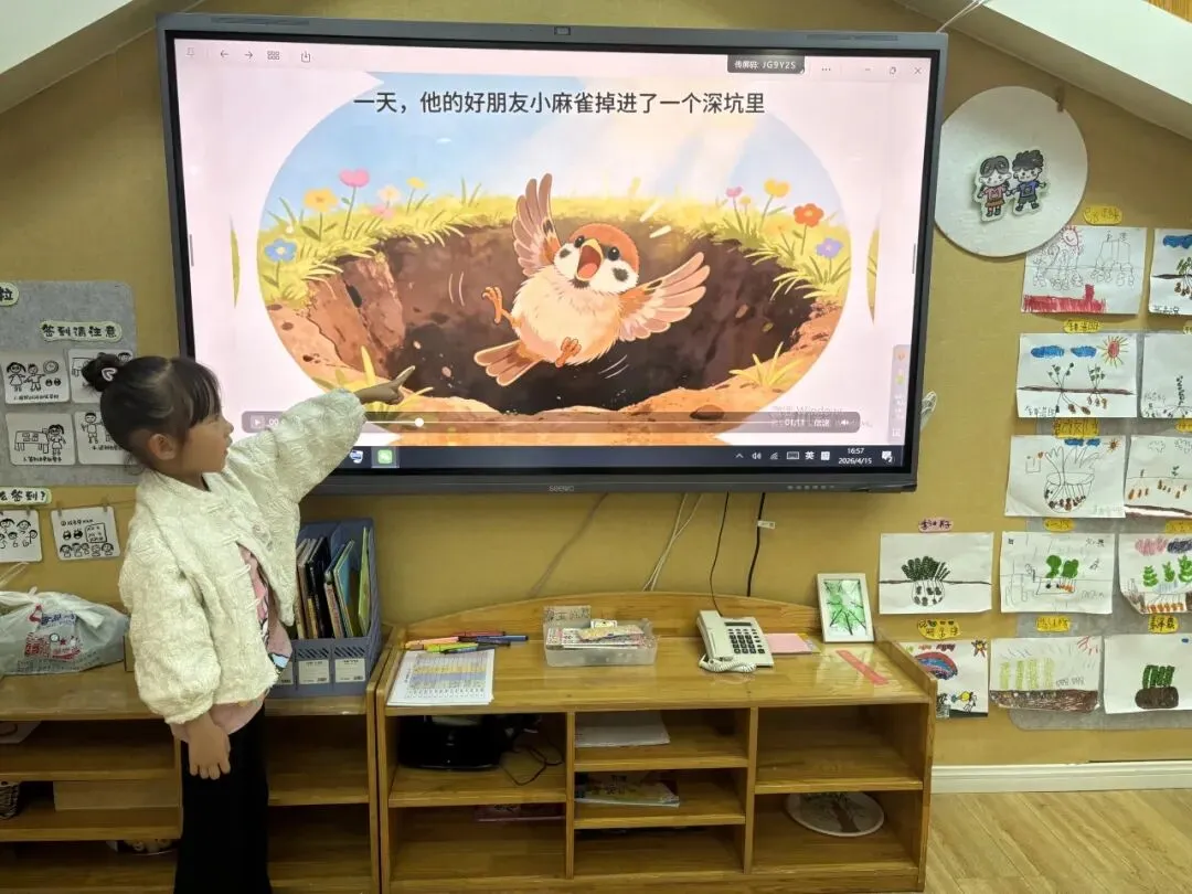 小小故事家,分享大精彩 宝贝们自信地给同伴们分享自己创作的AI绘本故事。生动的画面、稚嫩的讲述,让大家一起走进了她的奇妙创意世界,在分享中收获快乐与成长。