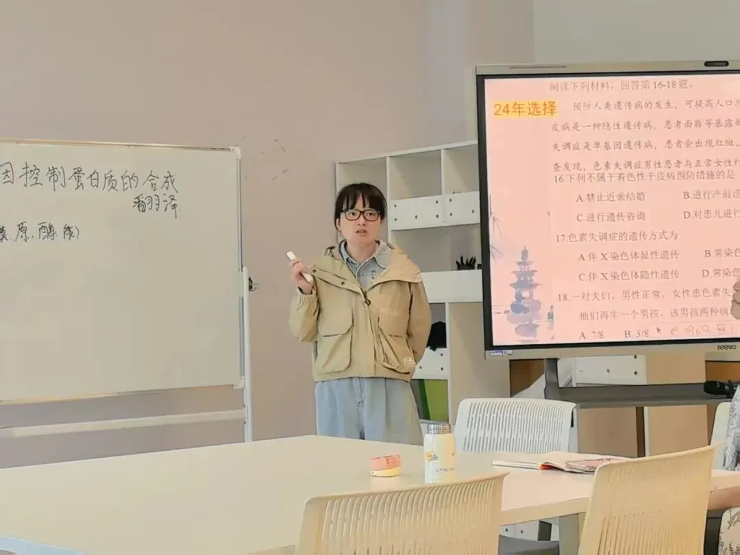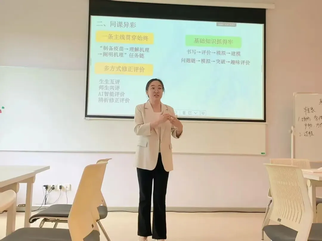 我校范小芳老师进行同课异构展示。范老师立足我校学情,设计精巧,将“AI赋能”完美融入教学模型构建中。通过“问题链设计-模拟探究-重难点突破-趣味评价”的层层递进,牢抓基础知识,充分展现了我校扎实创新的生物教学特色。