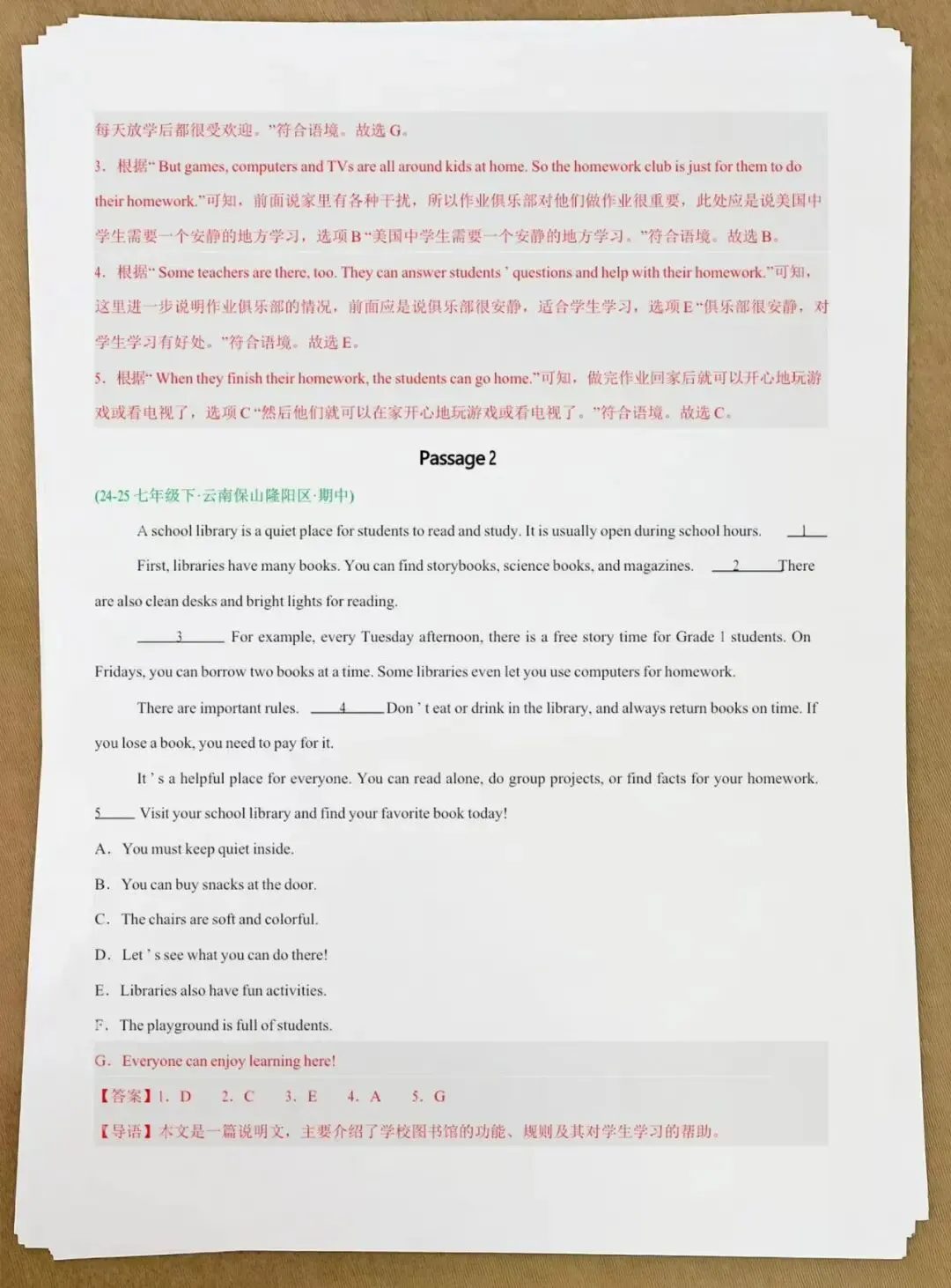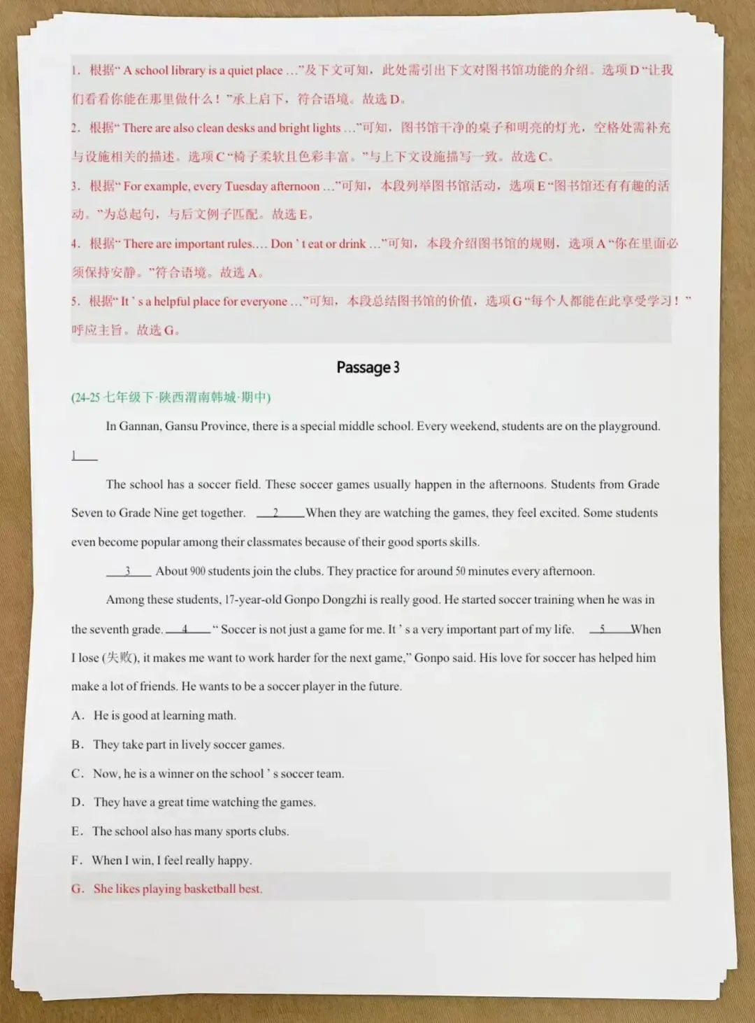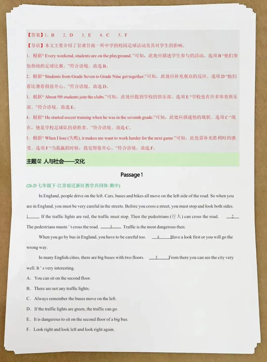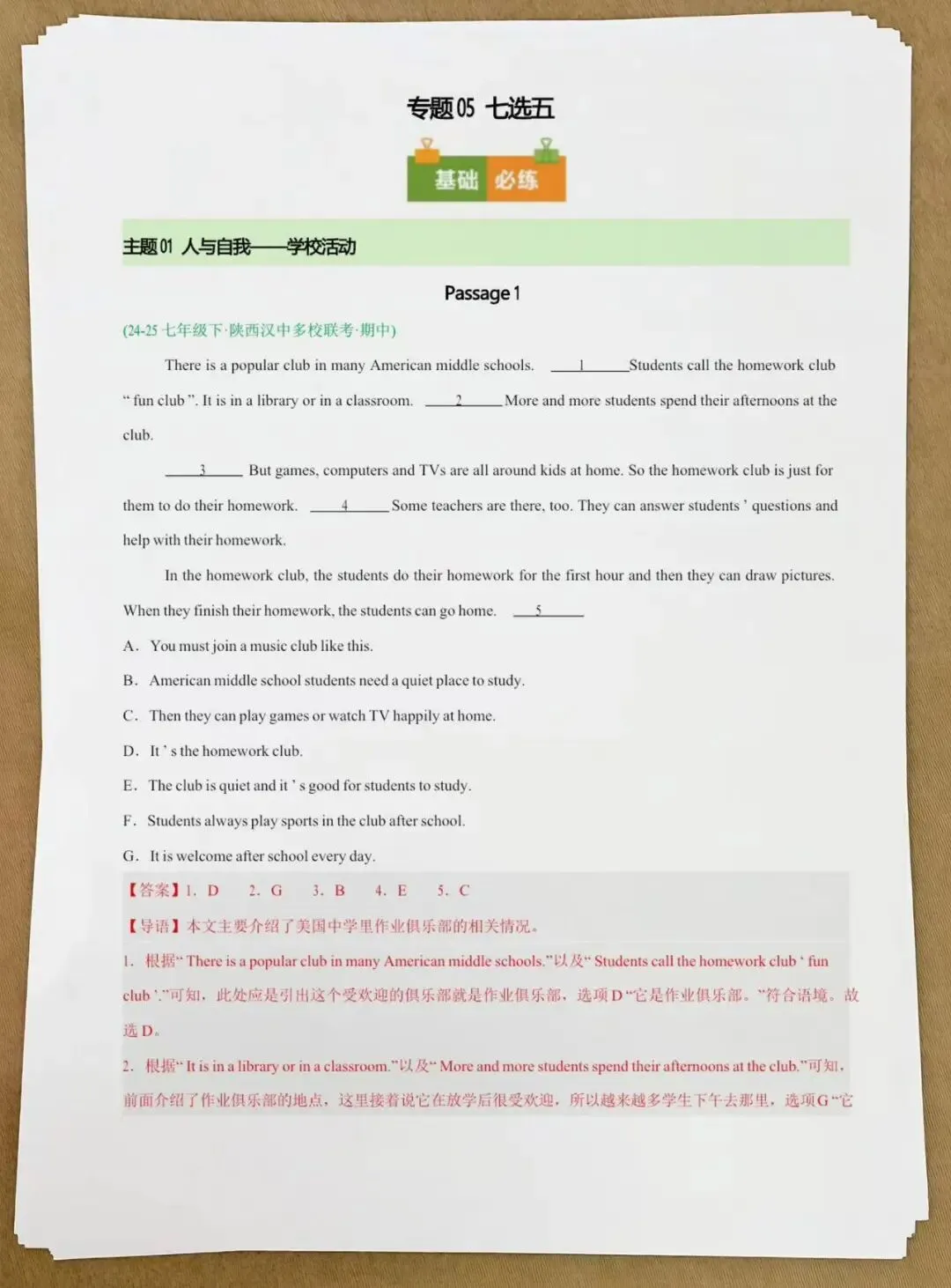 七年级下册英语七选五期中真题合集,人教版专用,精选名校真题,专项突破阅读难点,孩子刷题更高效,期中备考更省心!