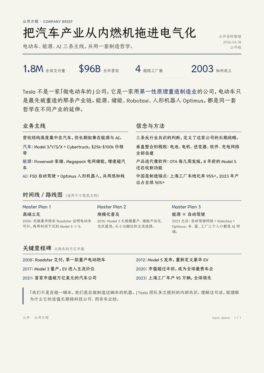 Tesla 公司介绍 · One-Pager