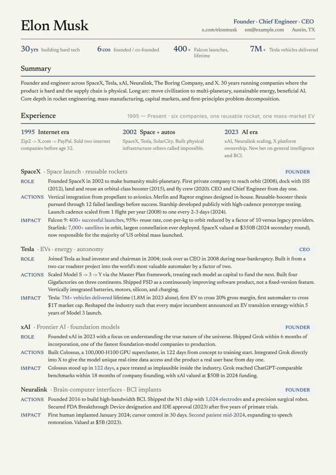 Elon Musk 简历 · Resume