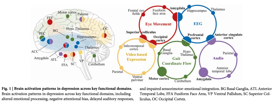 作者认为,虽然过去已经有不少单模态研究,比如只用 EEG 或只用语音去区分抑郁和非抑郁人群,但现实中的抑郁表现本来就具有多维特征:既可能反映在脑活动,也可能反映在语音节律、面部表情、注视模式甚至步态上。因此,把多种模态整合起来,再用 AI 建模,理论上更有可能提高筛查性能。