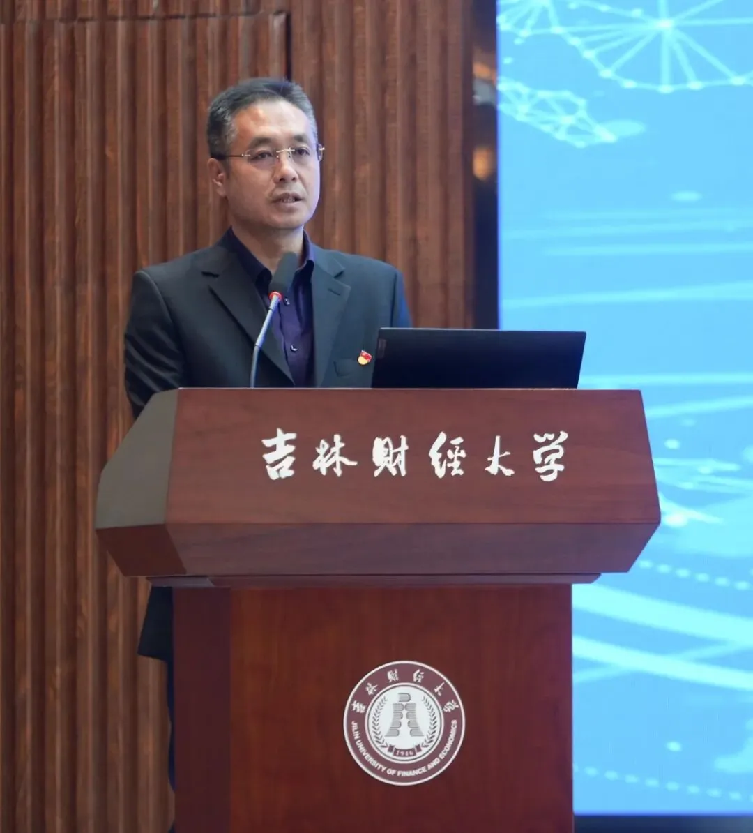 ▲ 吉林大学信息化与信息管理研究中心主任陈太博教授主持颁奖典礼