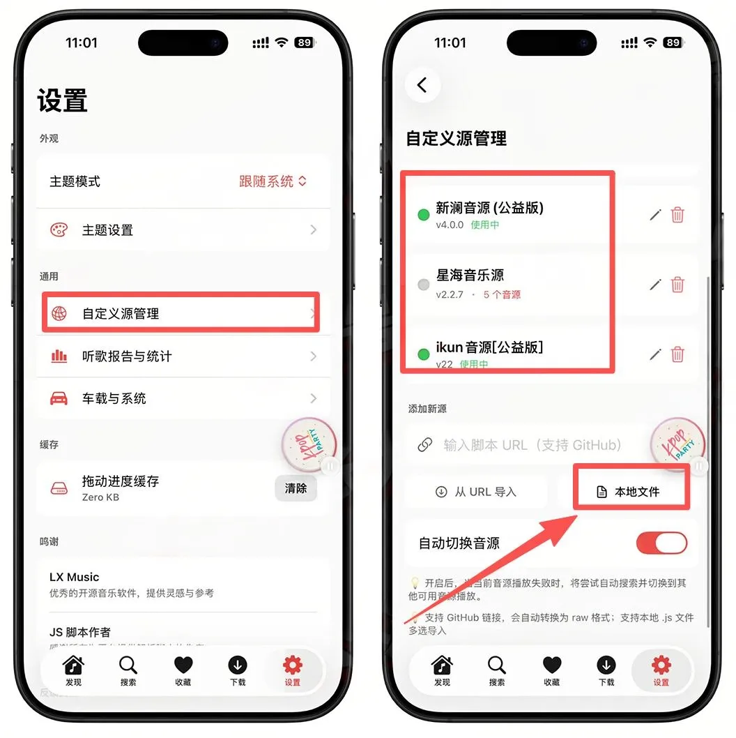 安装好App后需要导入一下音源。点击「设置」–「自定义源管理」–「本地文件」,选择保存到本地的音源,点击打开,然后就可以正常使用了!