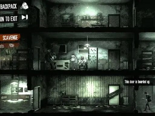 《这是我的战争》彻底颠覆了传统战争游戏的逻辑,你不再是冲锋陷阵的士兵,而是一群被困在围城之中的平民。游戏的核心玩法,围绕着昼夜交替的生存循环展开,每一步都充满了艰难抉择。